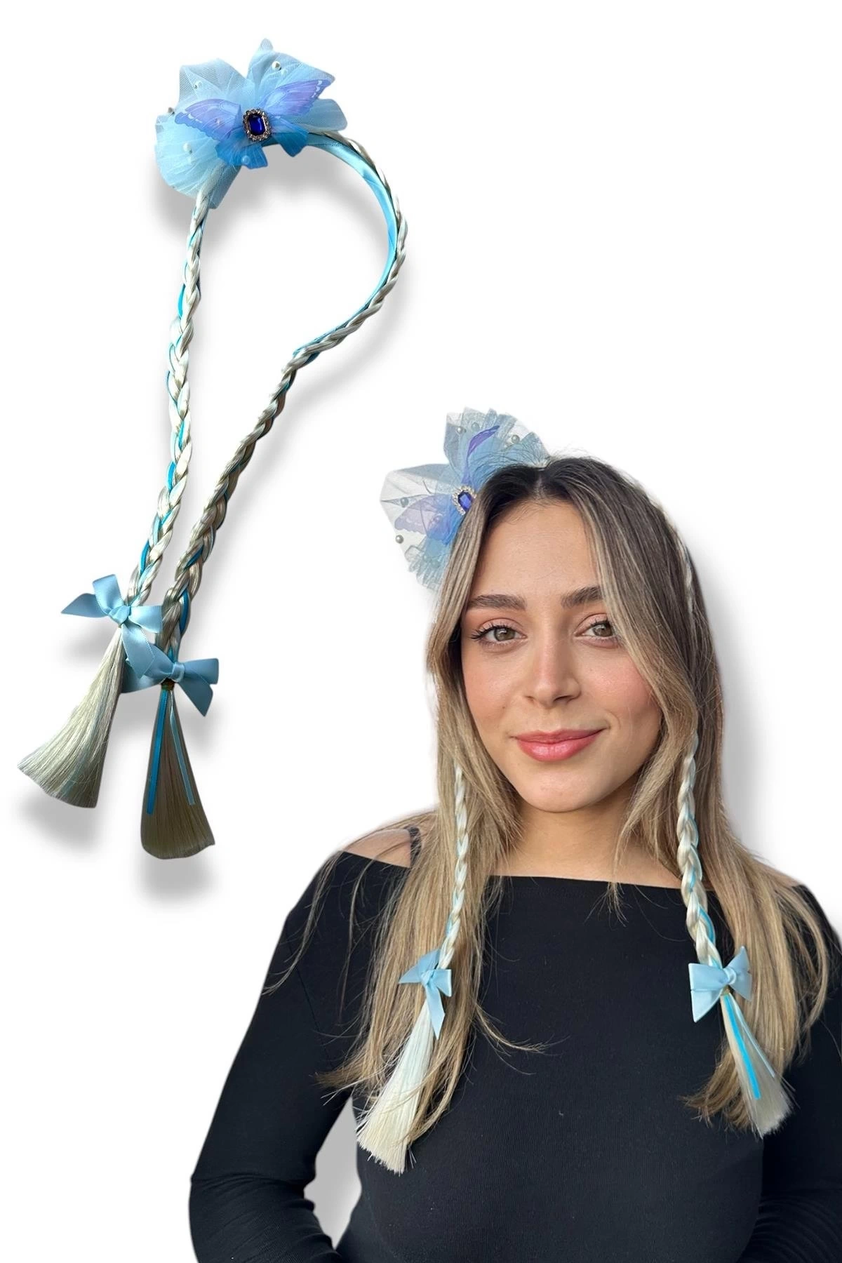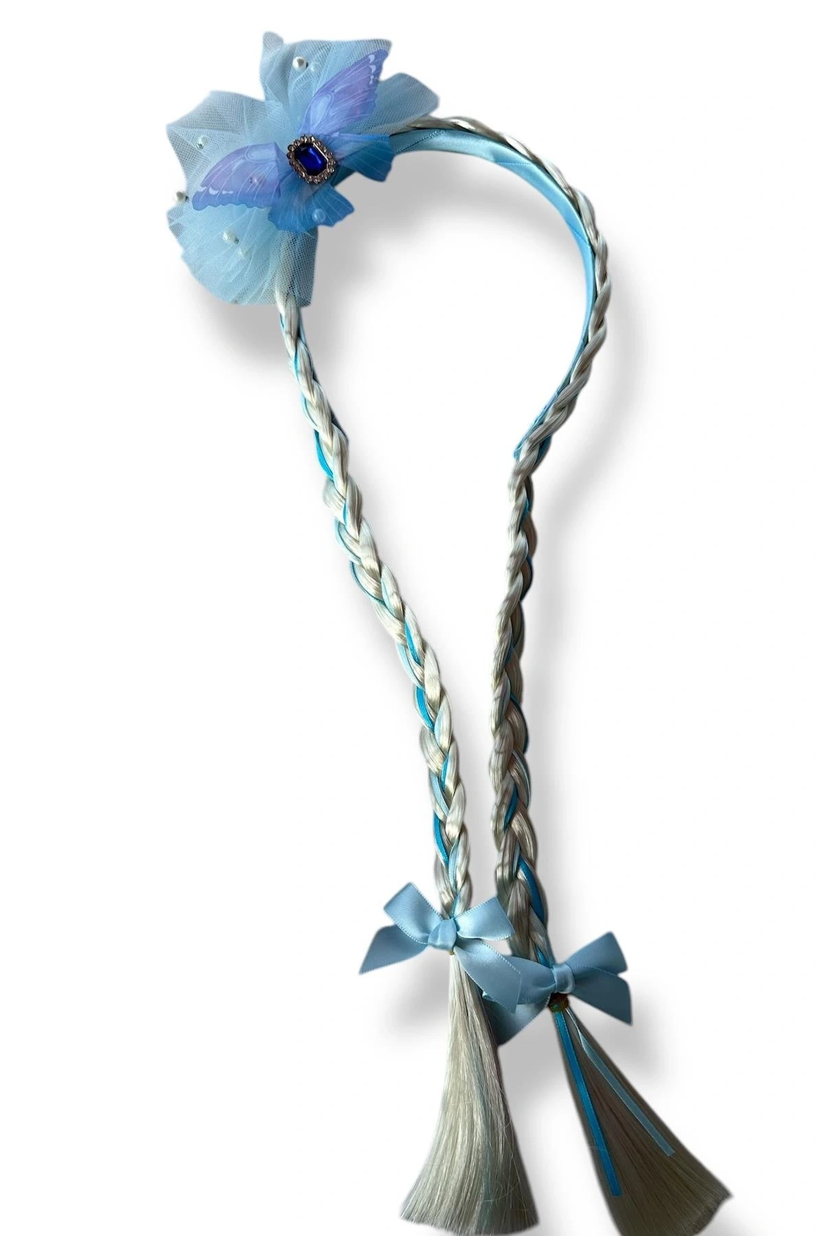 Mavi Renk Kurdele Figürlü Örgülü Çocuk Taç