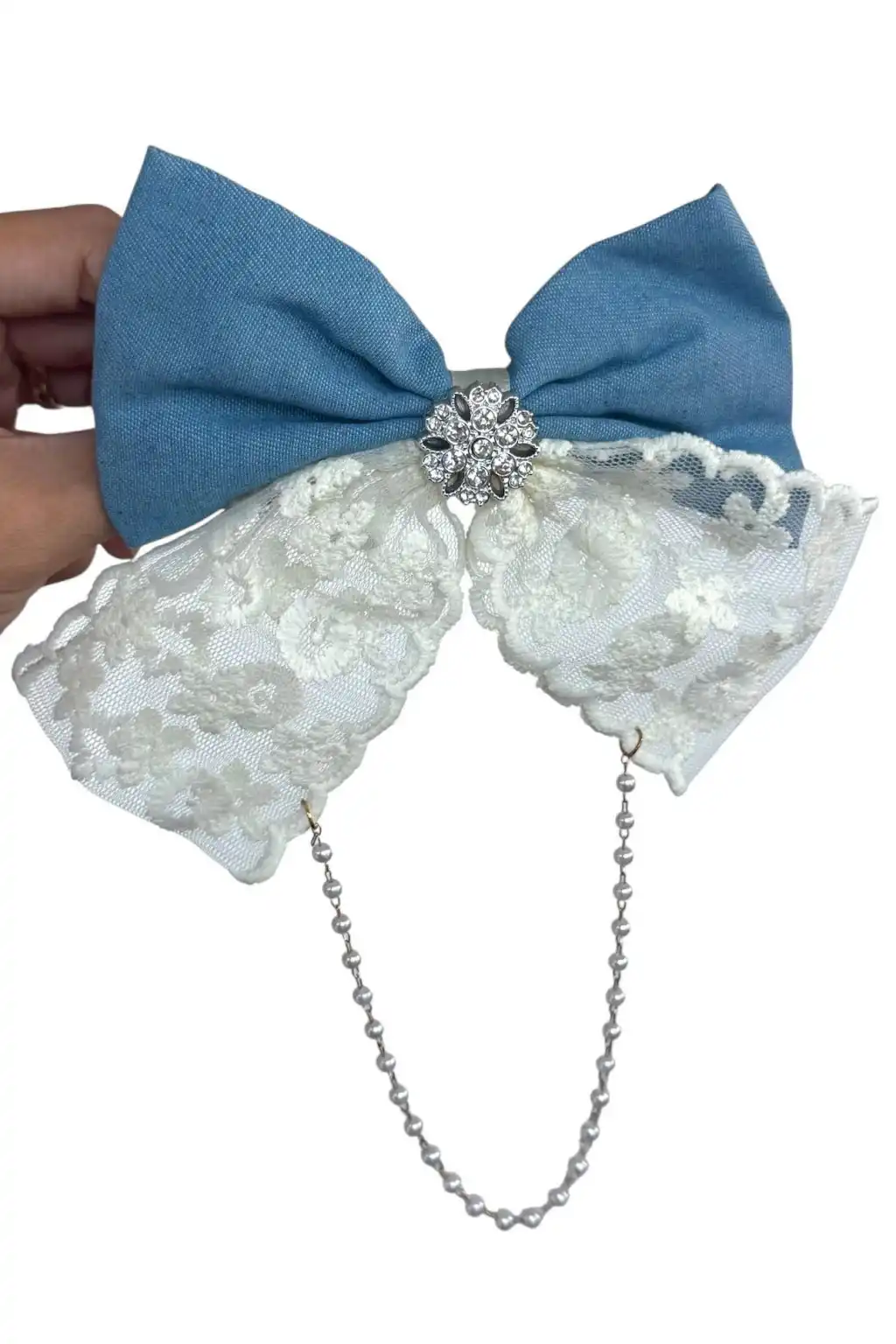 Beyaz Ve Mavi Renk Kurdele Figürlü Taş Detaylı Otomat Toka