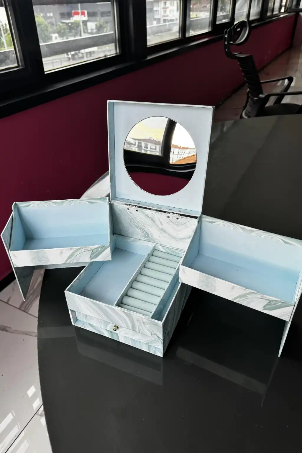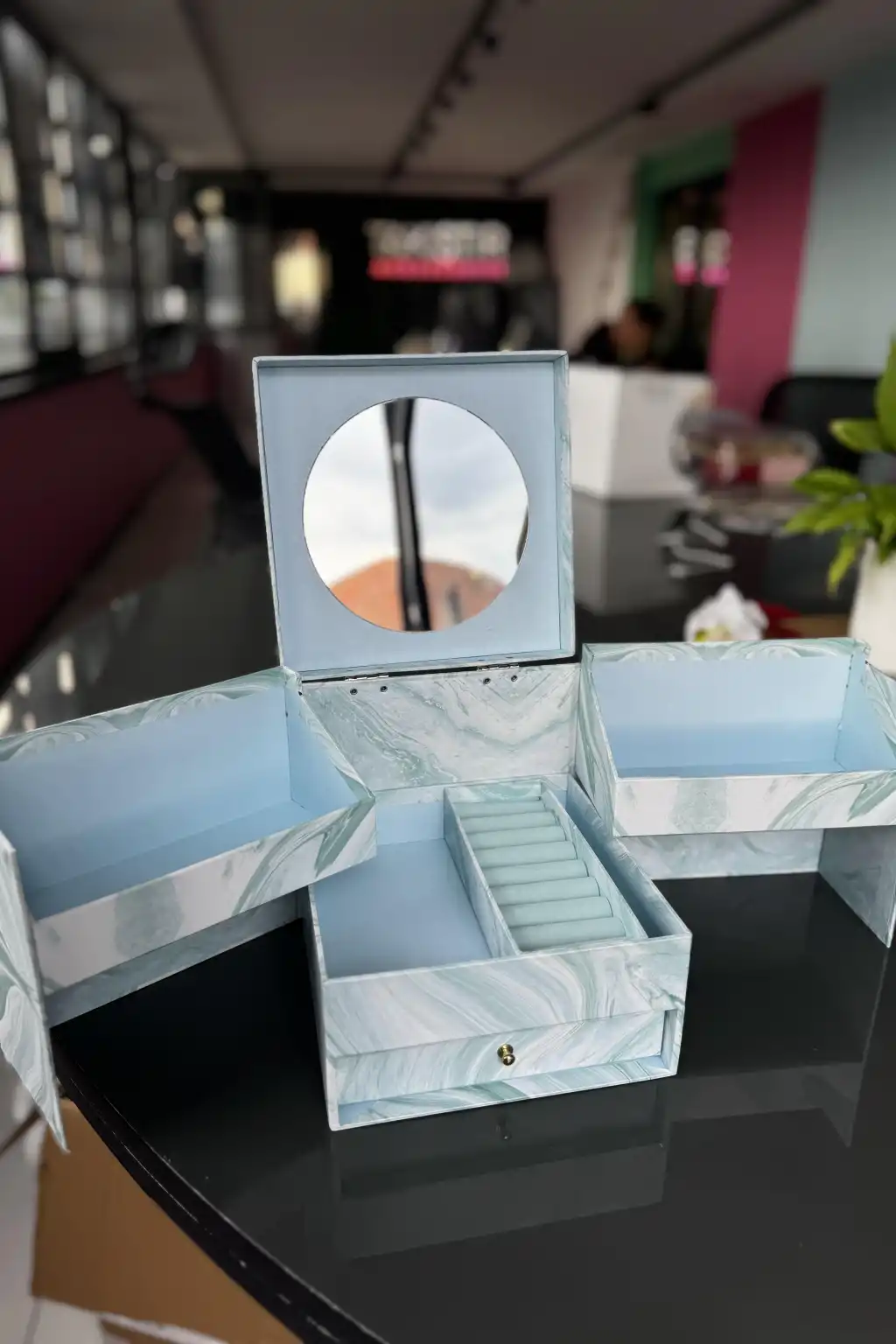 Mavi Renk Kutulu Ayna Detaylı Takı Organizer