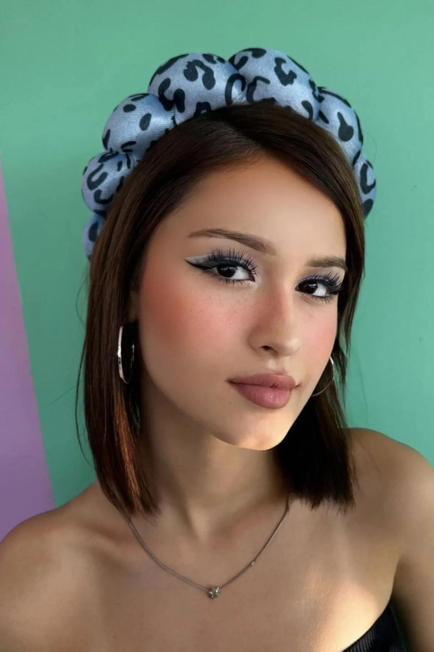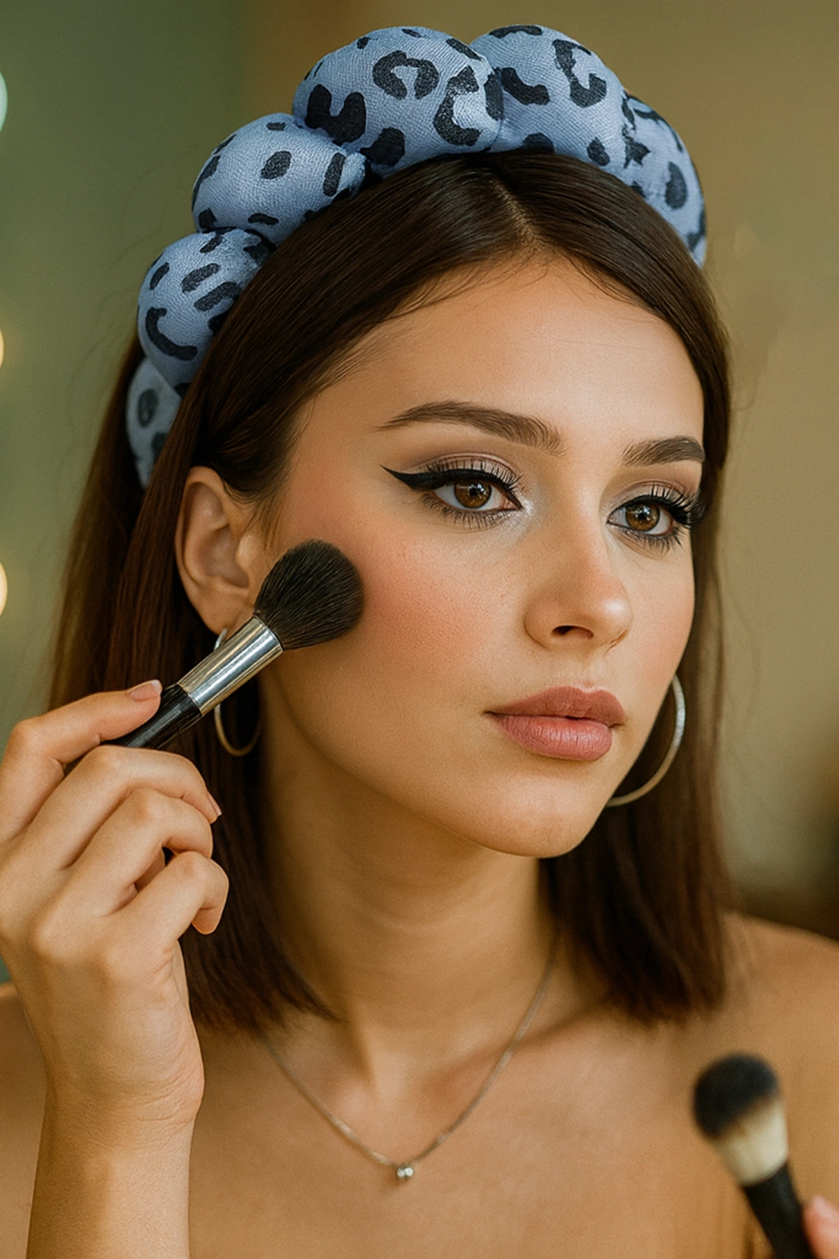 Mavi Renk Leopar Desenli Spa Saç Bandı Havlu Taç