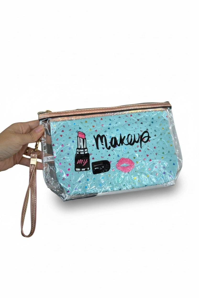 Mavi Renk Makeup Yazılı Makyaj Çantası