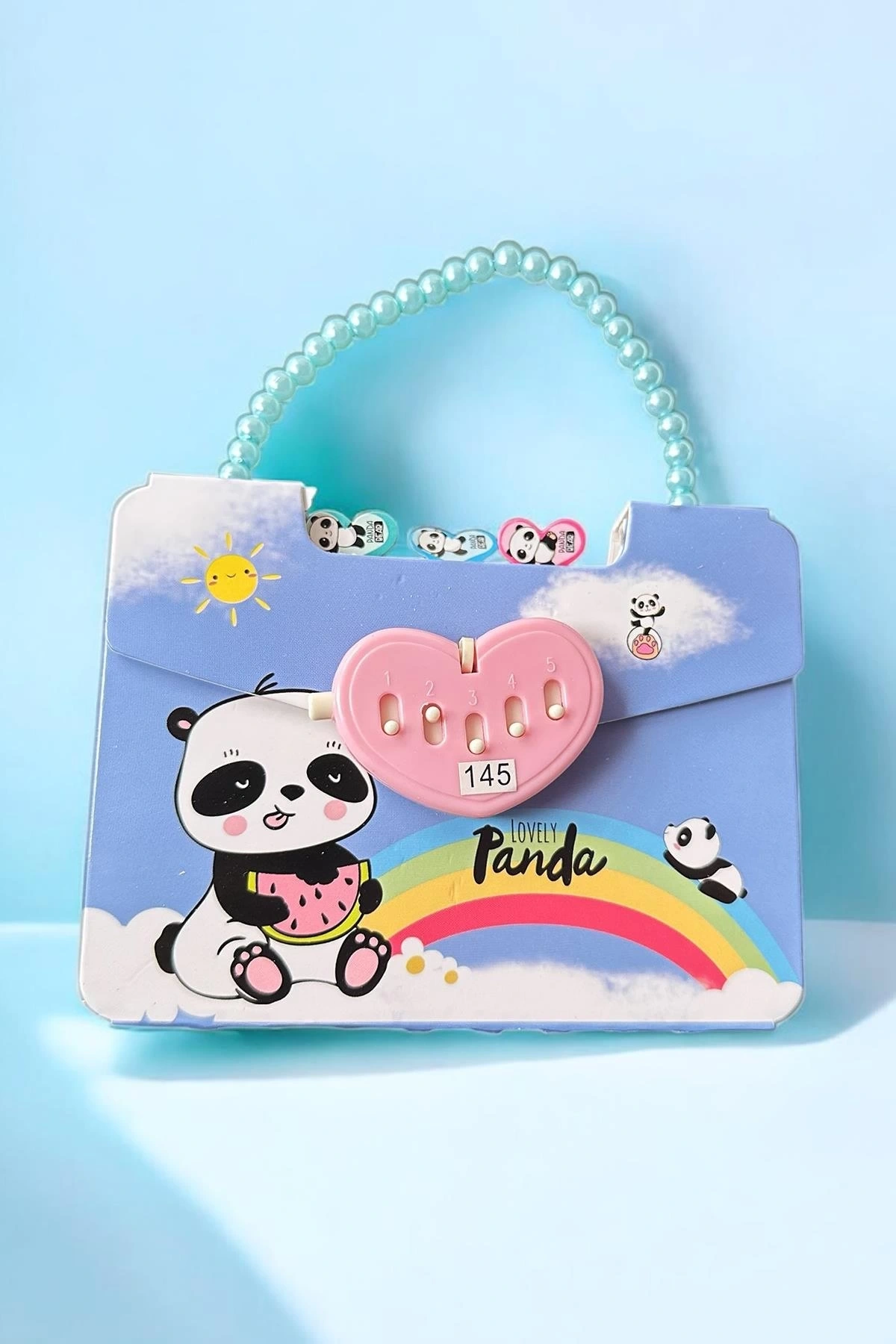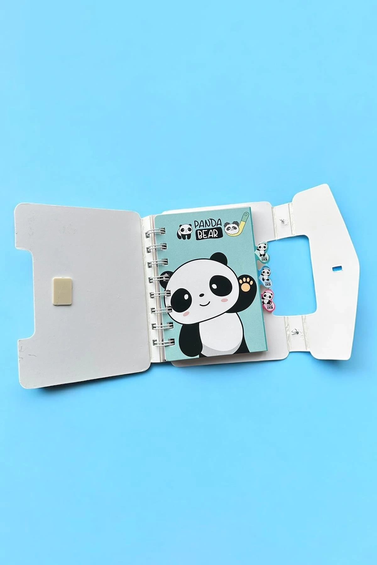 Mavi Renk Panda Figürlü Kilit Detaylı Not Defteri