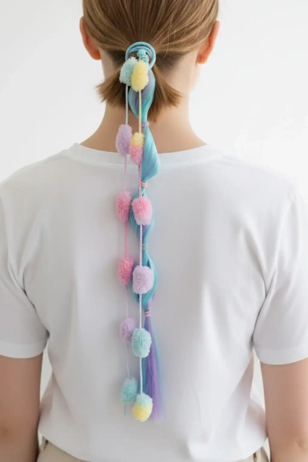 Pembe Ve Mavi Renk Saç Detaylı Lastik Toka