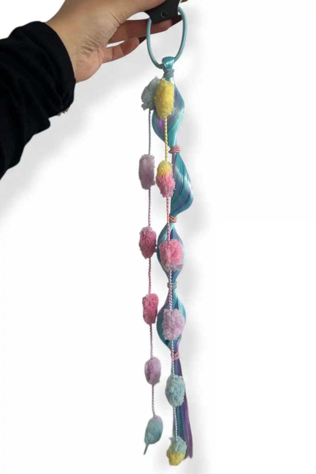 Mavi Ve Pembe Renk Saç Detaylı Lastik Toka