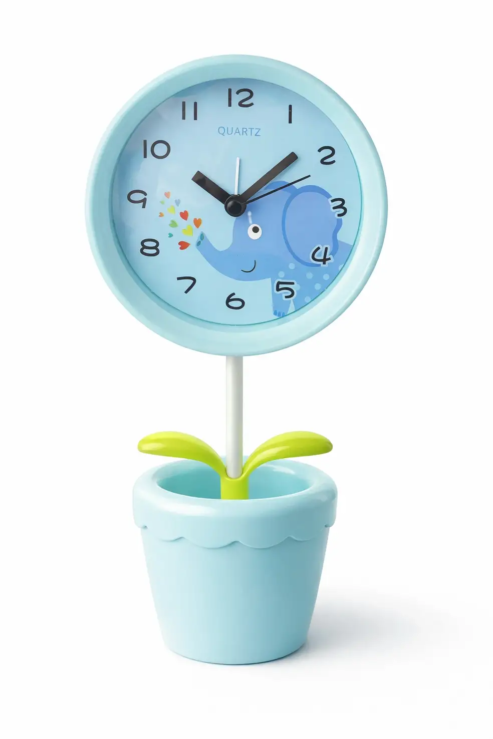 Mavi Renk Saksı Figürlü Alarmlı Masa Saati