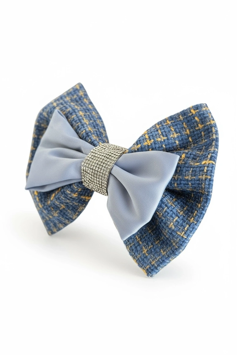 Lacivert Renk Kurdele Figürlü Çiçek Detaylı Otomat Toka