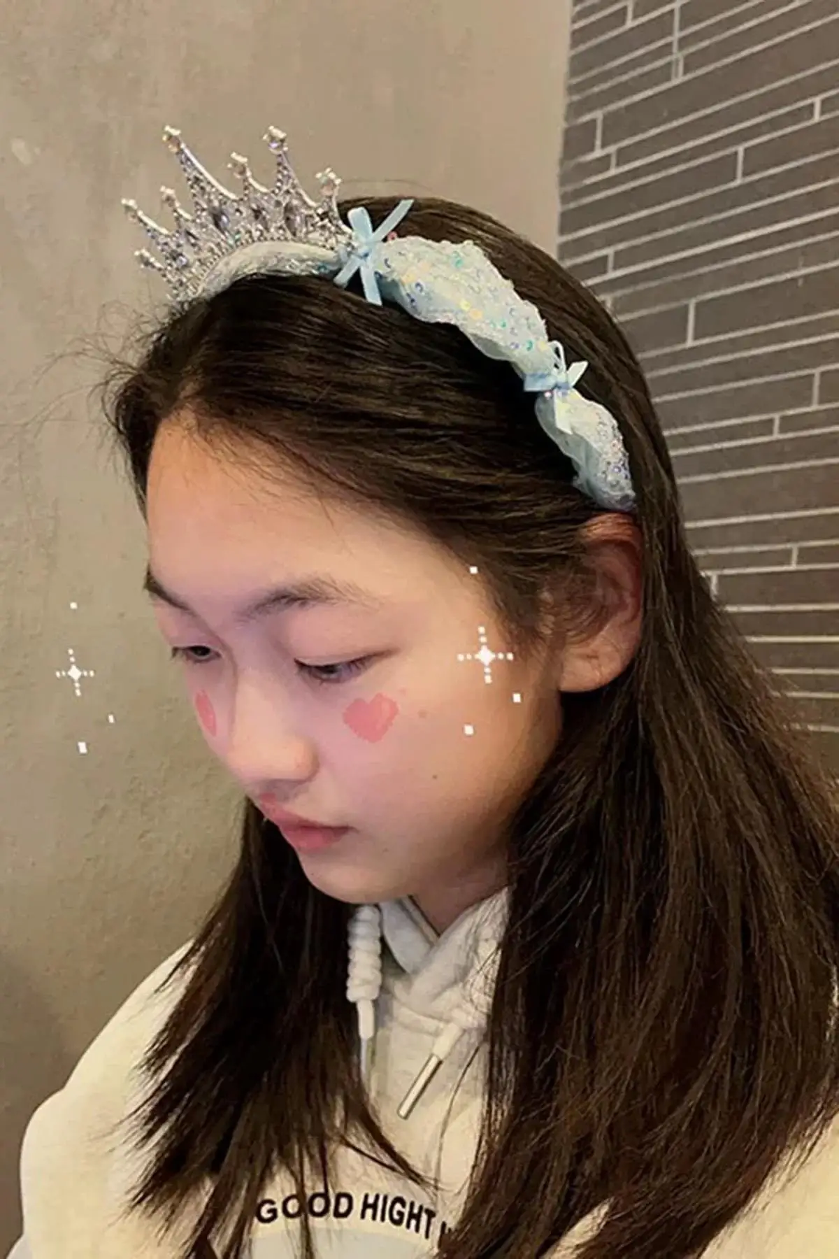 Mavi Renk Taş Detaylı Tüllü Çocuk Taç