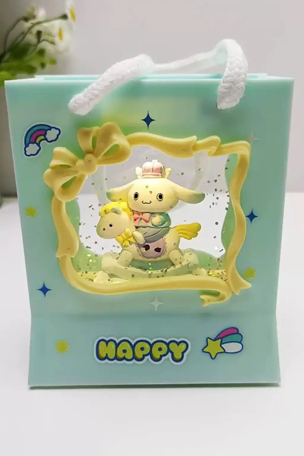 Sarı Renk Tavşan Figürlü Askı Detaylı Müziklı Işıklı Kar Küresi