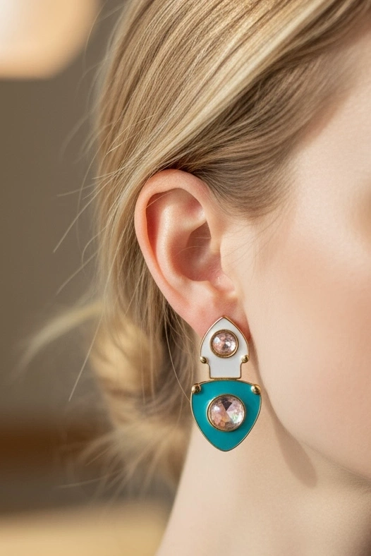Mavi Ve Beyaz Renk Taş Detaylı Küpe (Çift)