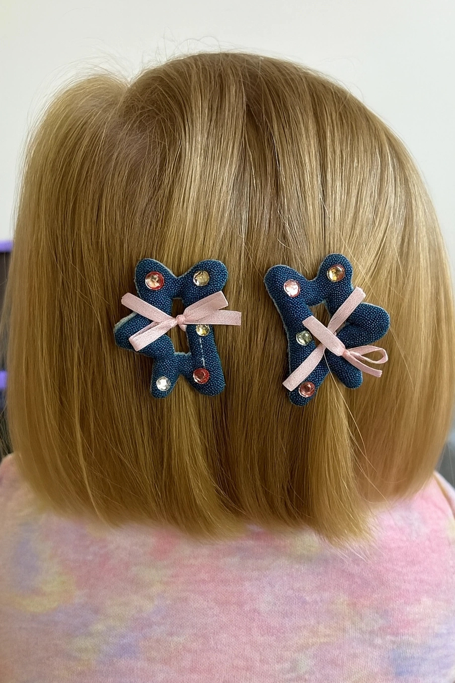 Mavi Ve Pembe Renk Karışık Figürlü Taşlı İkili Mini Mandal Toka Set