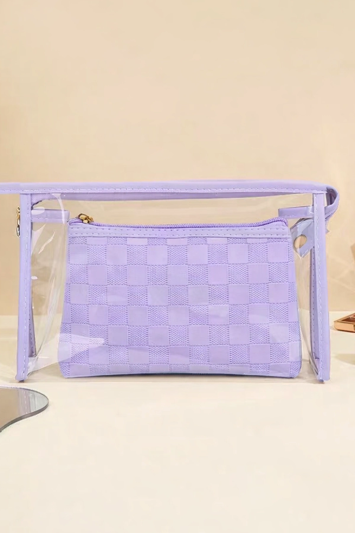 Mor Renk 2'li Şeffaf Makyaj Çantası
