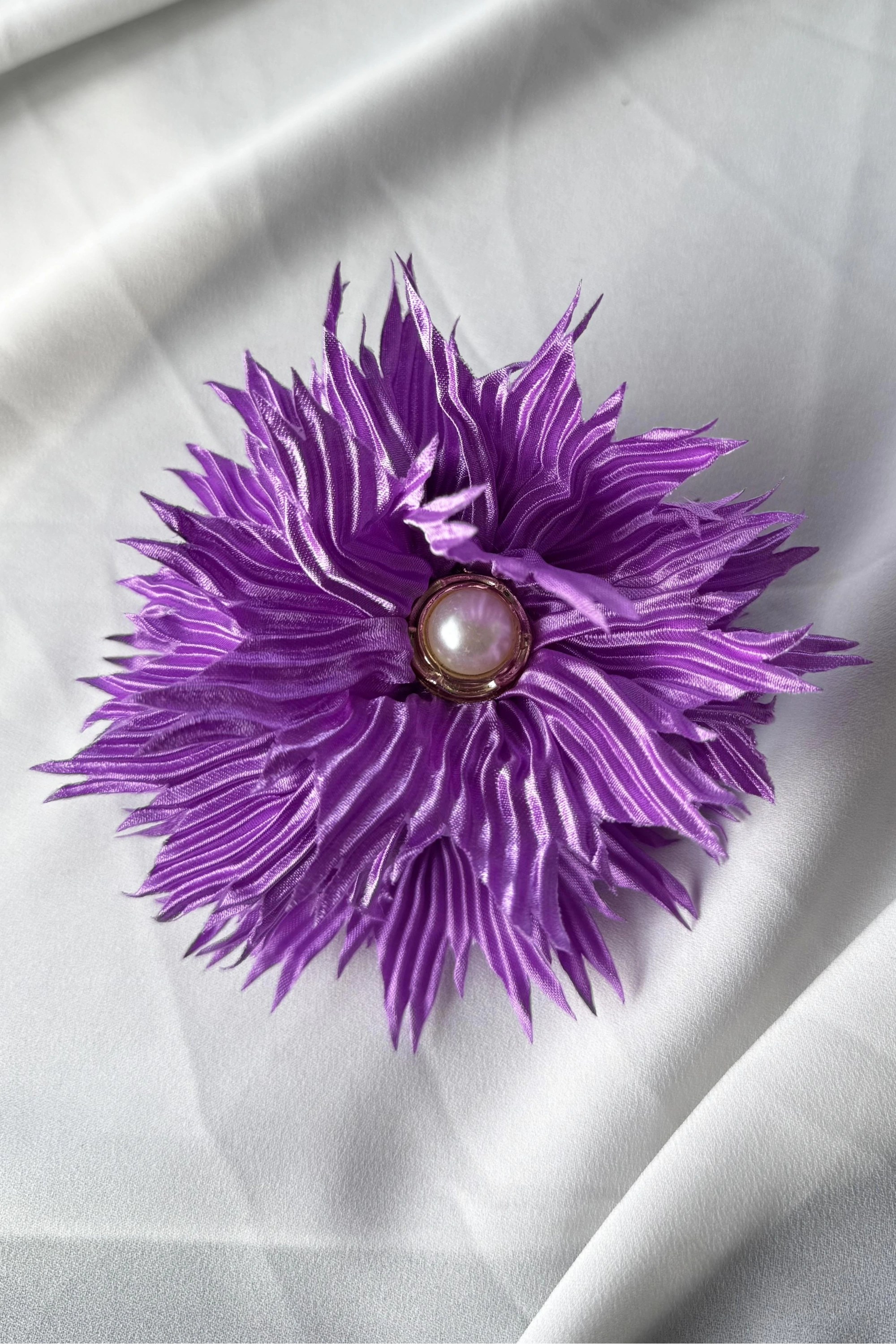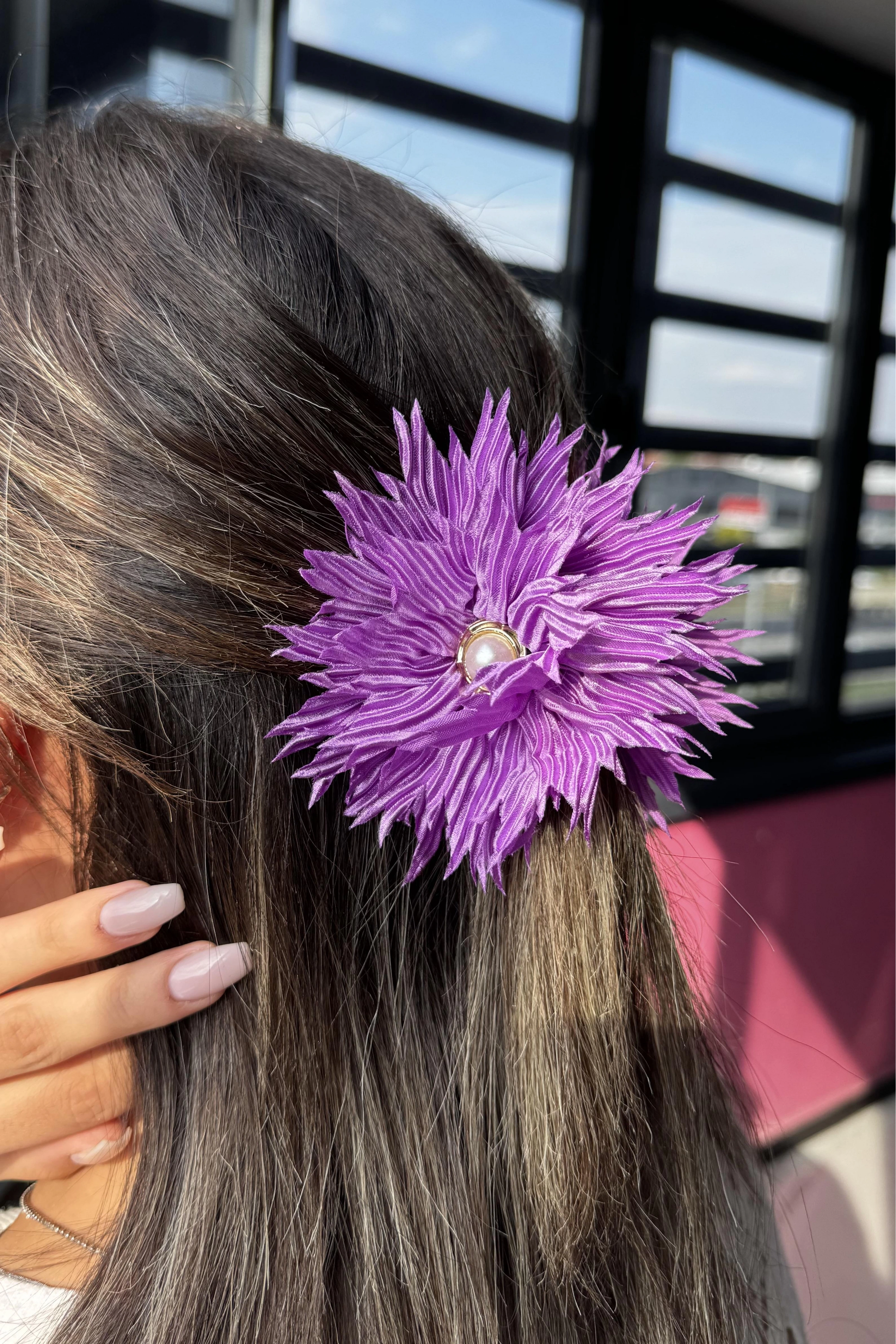 Mor Renk Çiçek Figürlü İnci Detaylı Mandal Toka
