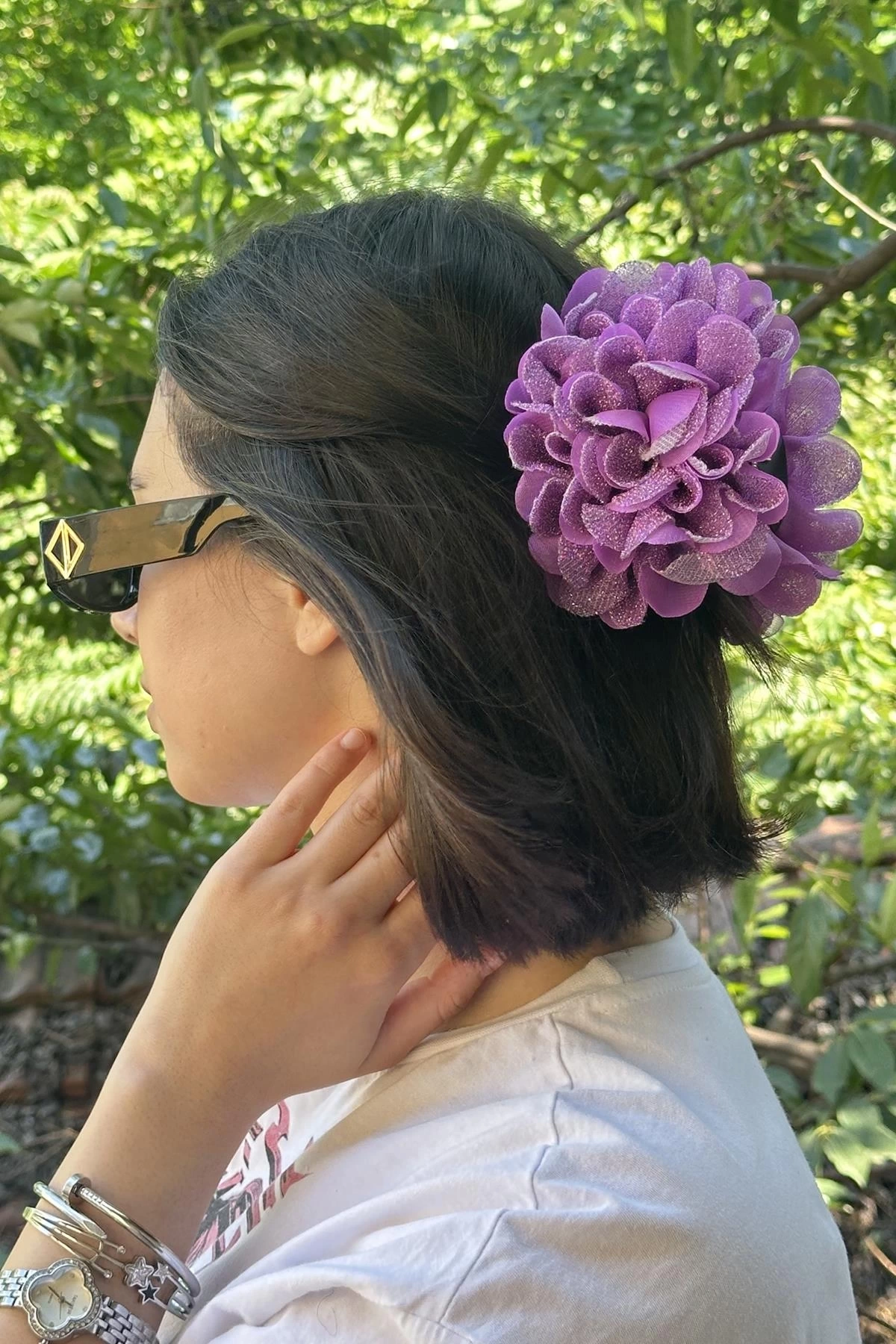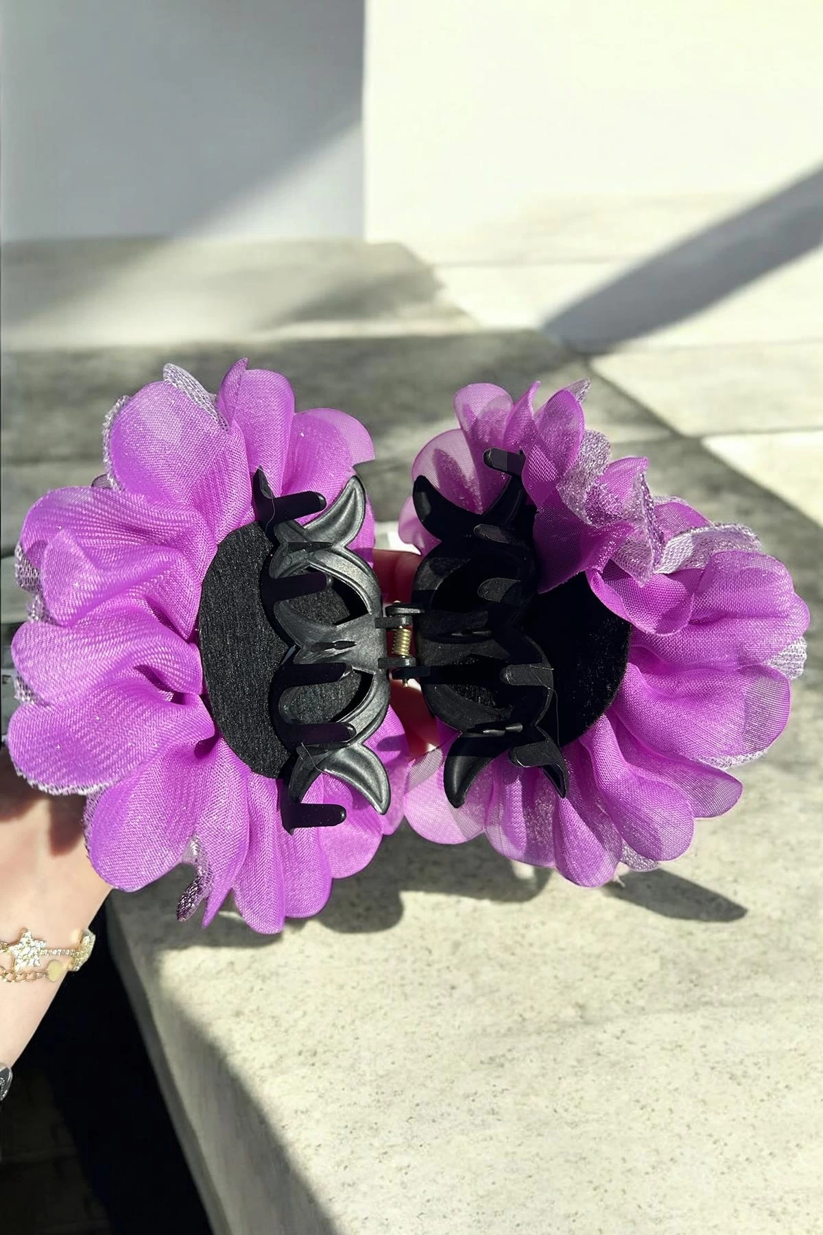 Mor Renk Çiçek Figürlü Sim Detaylı Mandal Toka