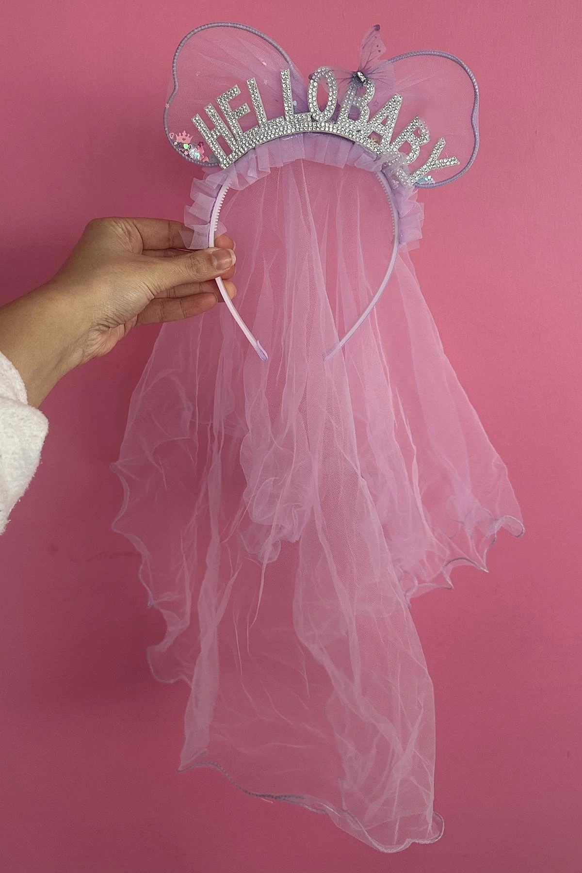 Mor Renk Hello Baby Yazılı Tül Detaylı Taç