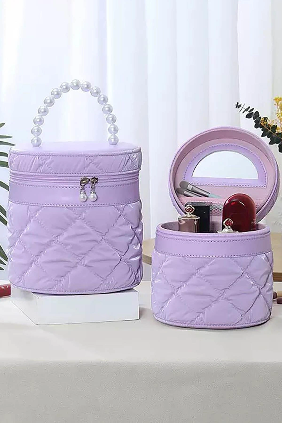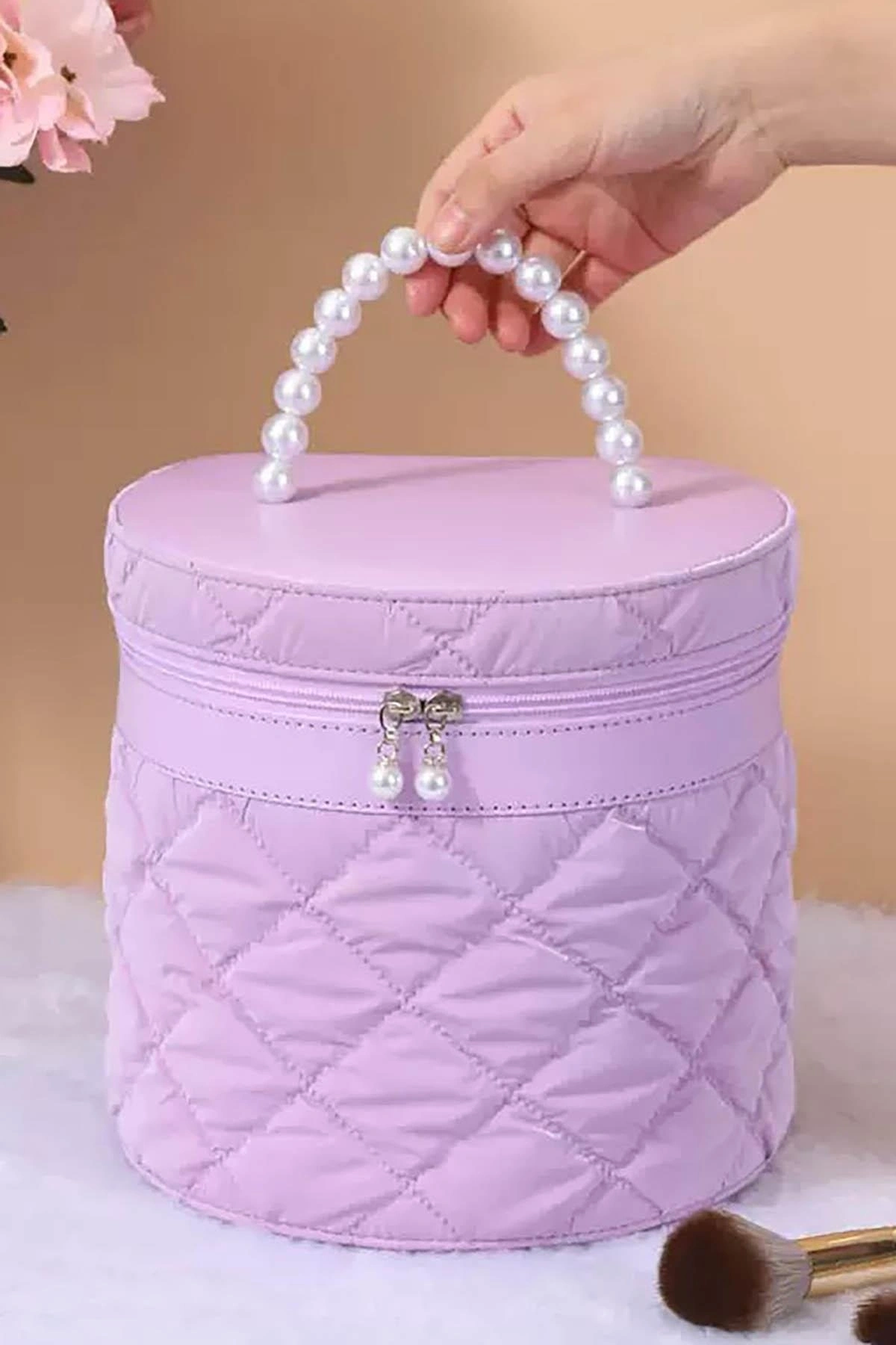Mor Renk İnci Detaylı Makyaj Ve Kişisel Bakım Çantası