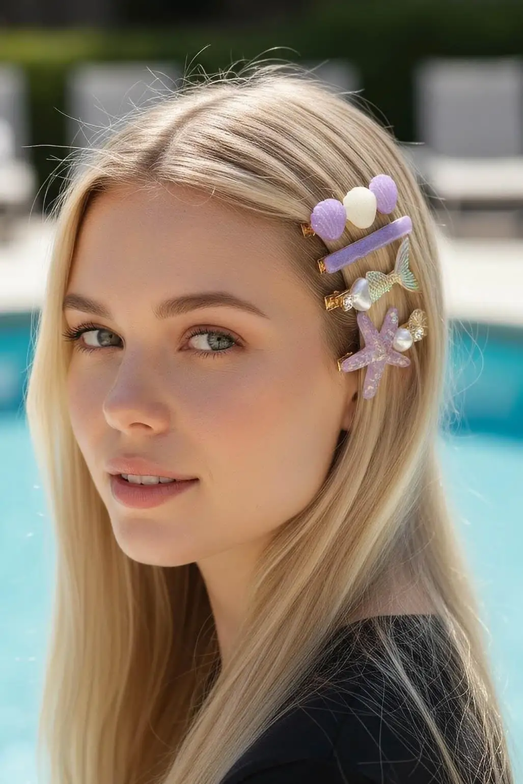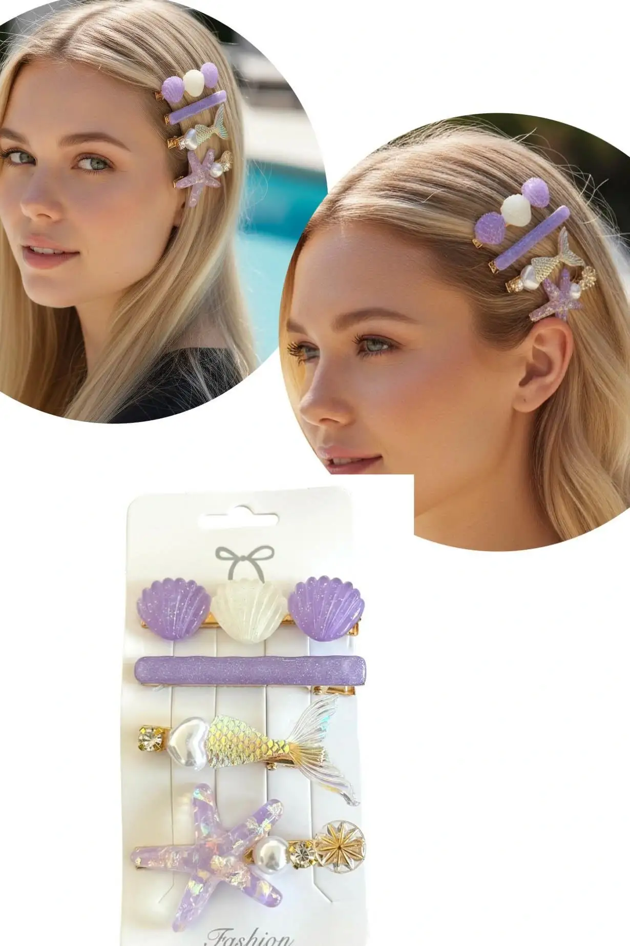 Mor Renk Taş Detaylı 6'lı Yan Toka Set