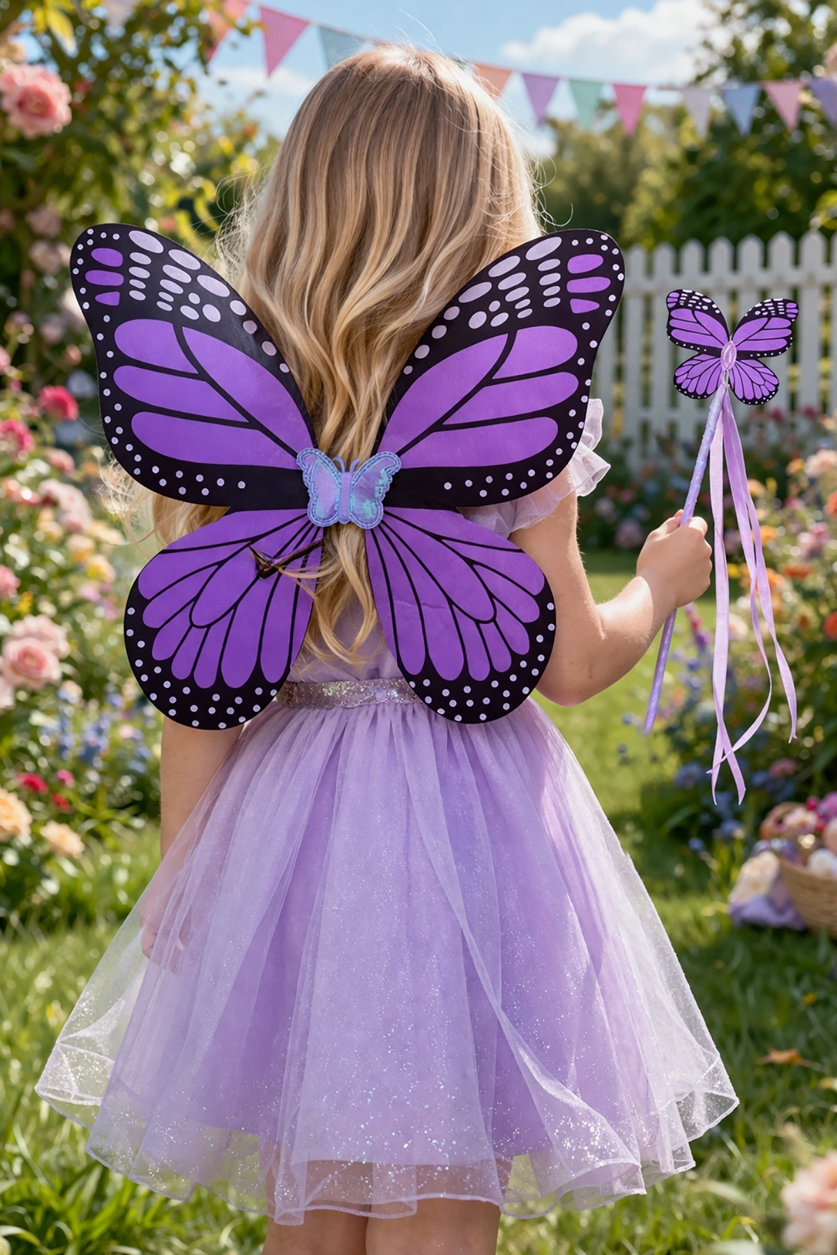 Çocukların hayal dünyasını renklendiren bu sevimli kelebek seti ile minikler adeta masal kahramanına dönüşüyor! Canlı mor tonları ve detaylı desenleriyle dikkat çeken kanatlar, yanında gelen uyumlu kelebek asasıyla birlikte eğlenceyi ikiye katlar.