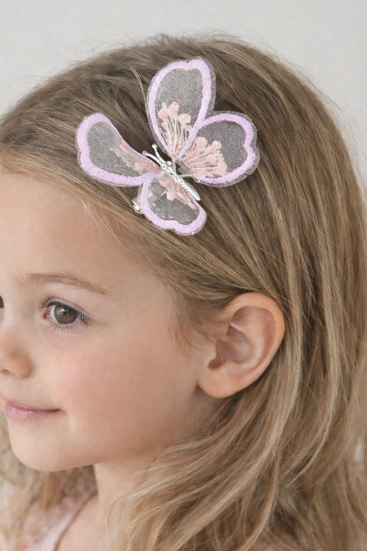Somon Renk Kelebek Figürlü İnci Detaylı Çocuk Yan Toka
