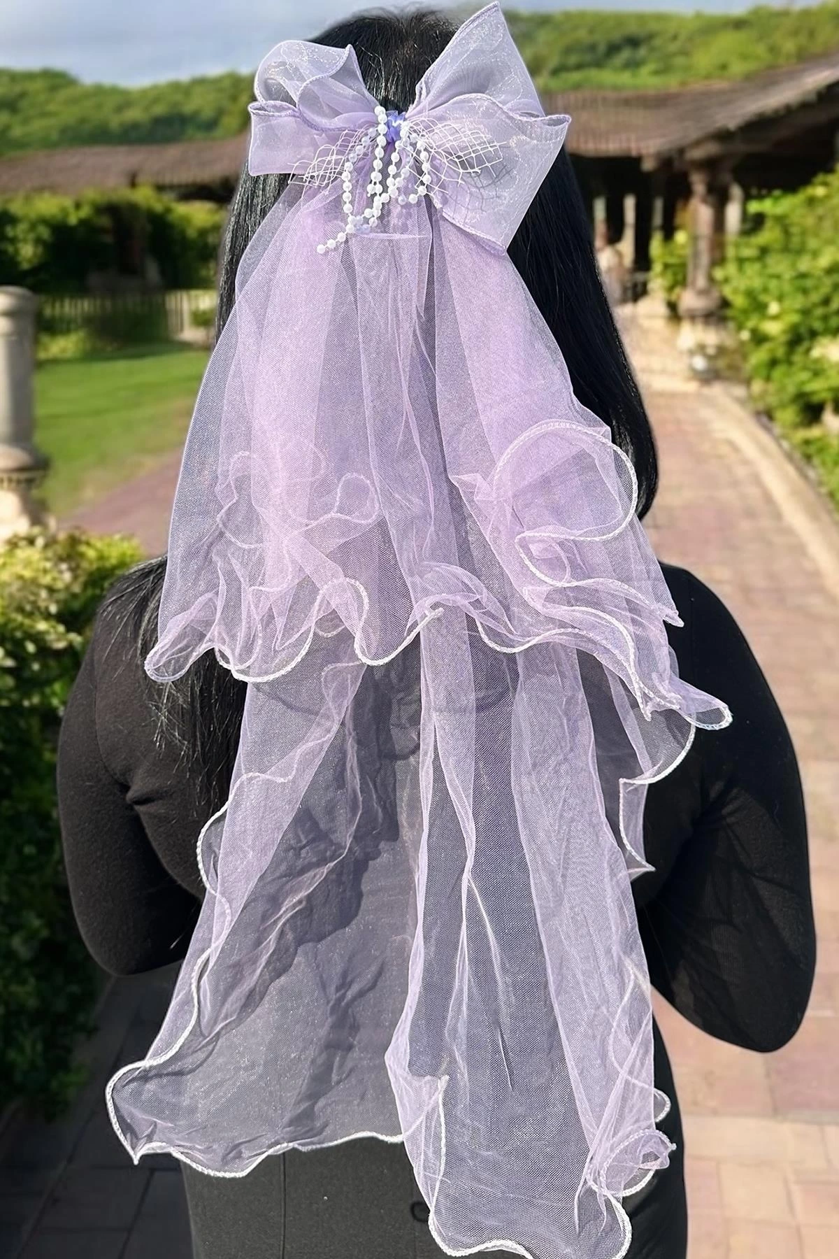 Mor Renk Kurdele Figürlü Duvak Detaylı Pens Toka