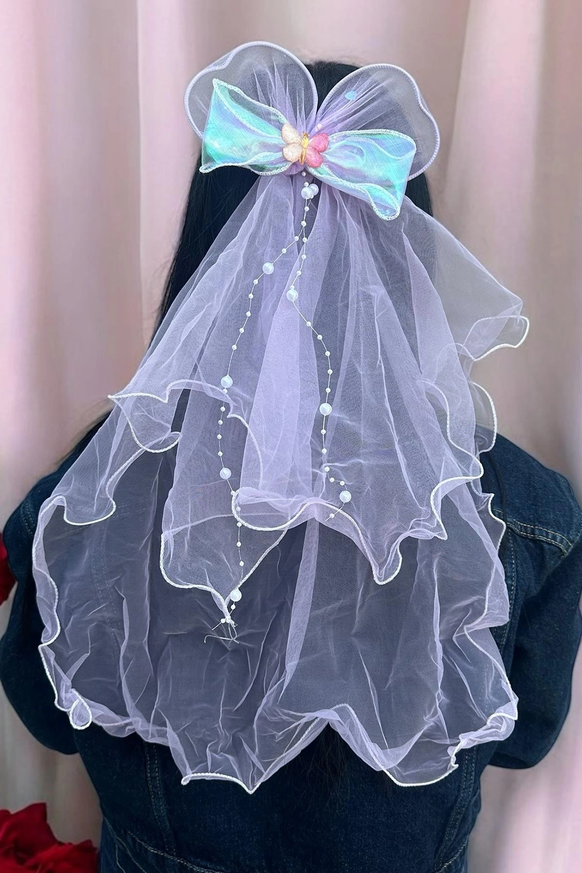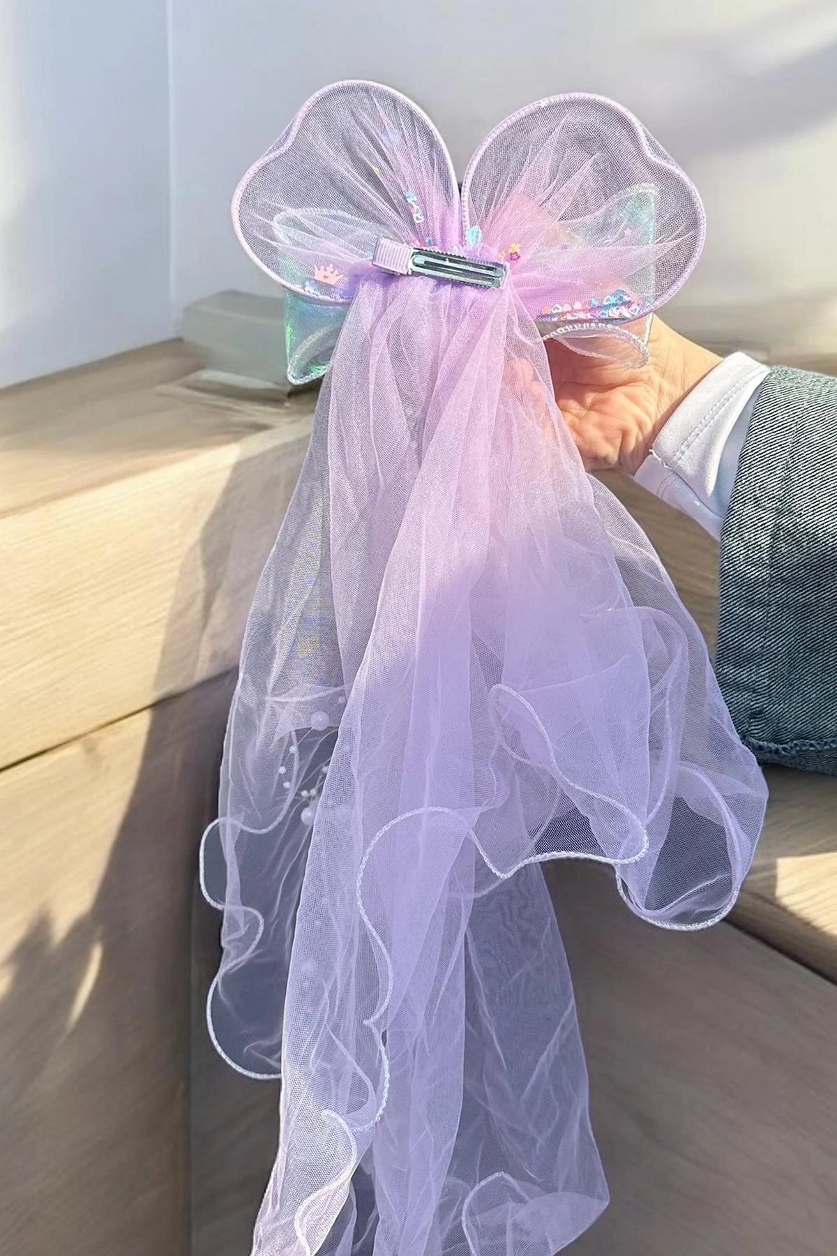Mor Renk Kurdele Figürlü Duvak Detaylı Yan Toka