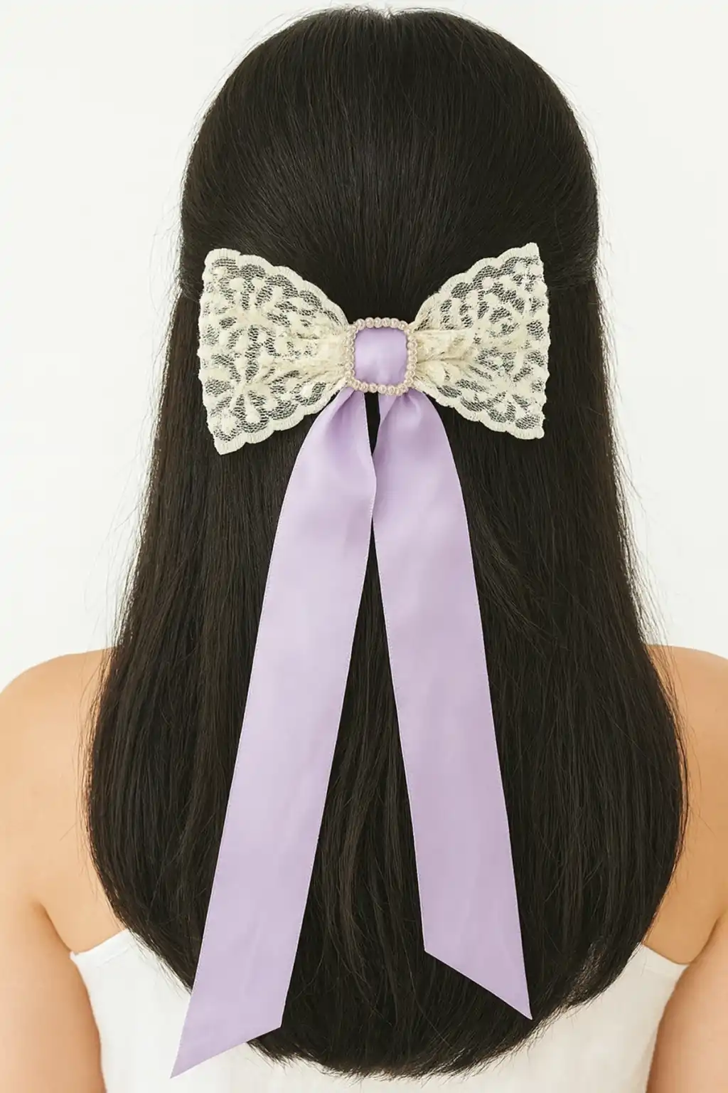 Mor Renk Kurdele Figürlü Taş Detaylı Otomat Toka