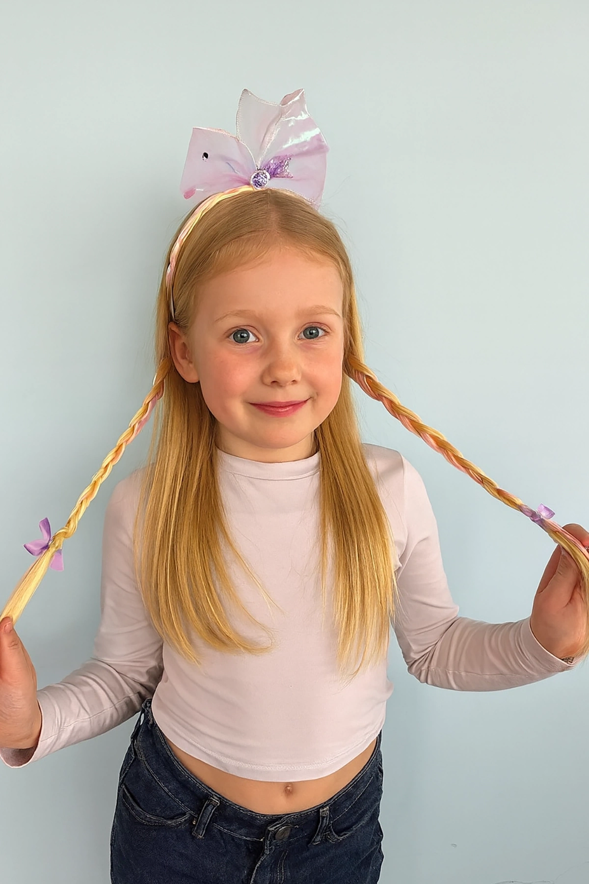 Mor Renk Kuyruk Figürlü Örgülü Çocuk Taç