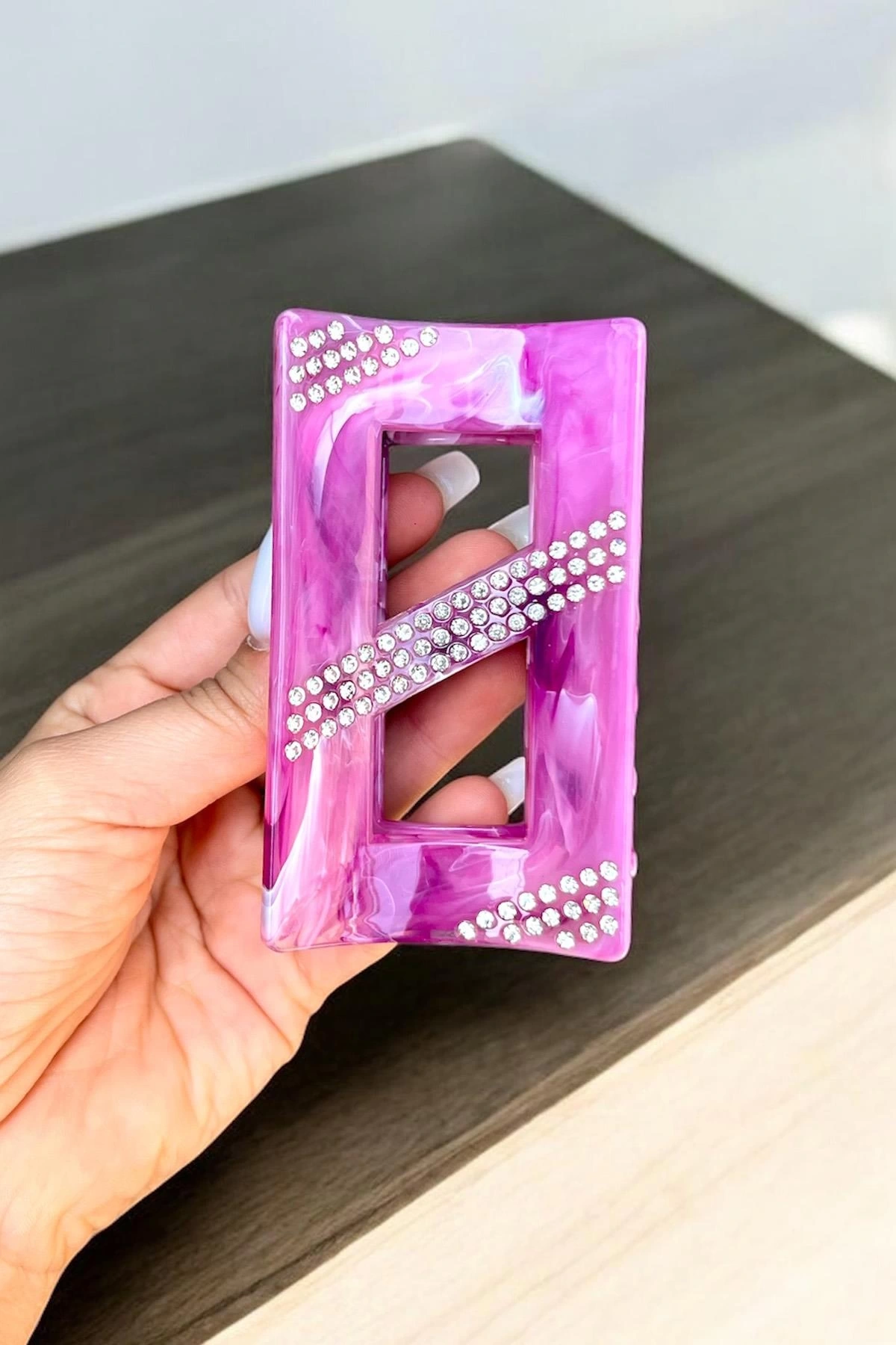 Mor Renk Mermer Desenli Taş Detaylı Kemik Mandal Toka