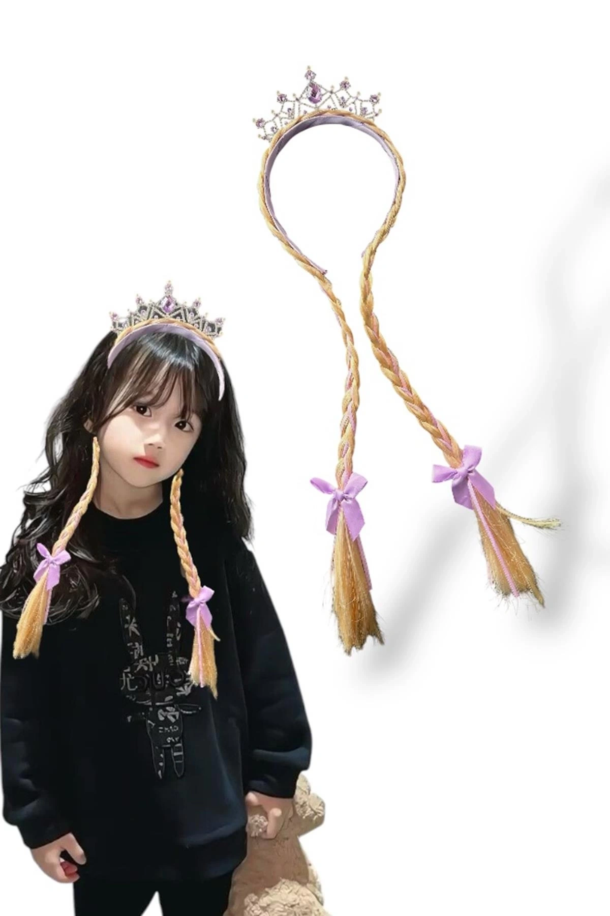 Mor Renk Örgü Saç Detaylı Taç