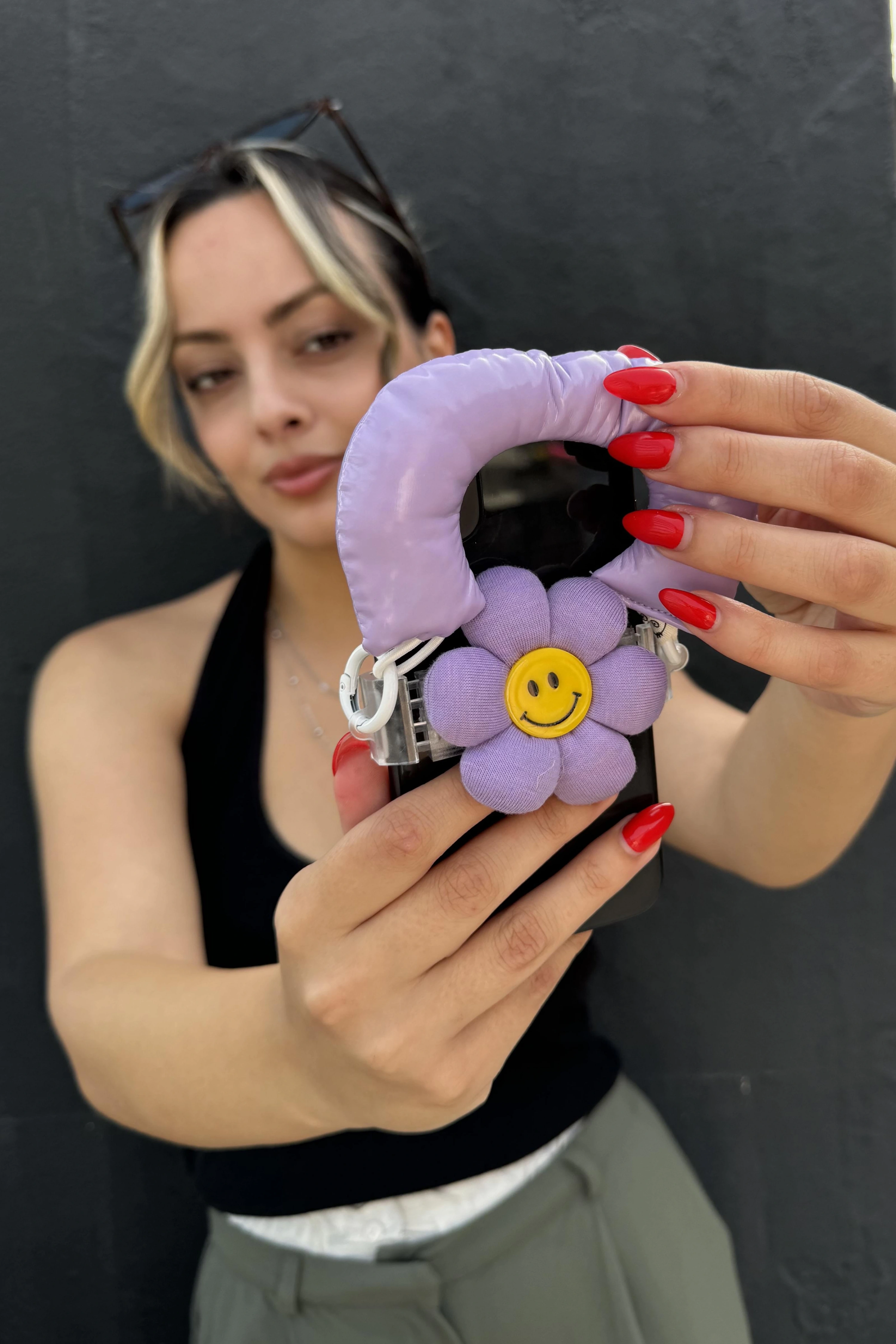 Mor Renk Papatya Figürlü Telefon Aksesuarı