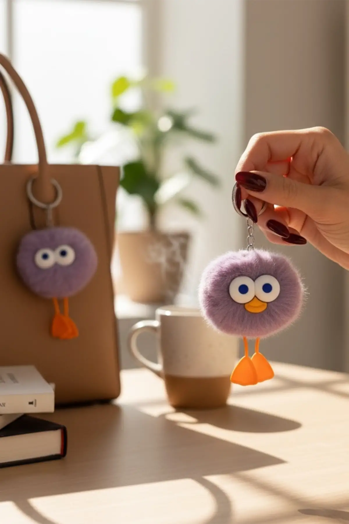 Mor Renk Peluş Canavar Figürlü Anahtarlık