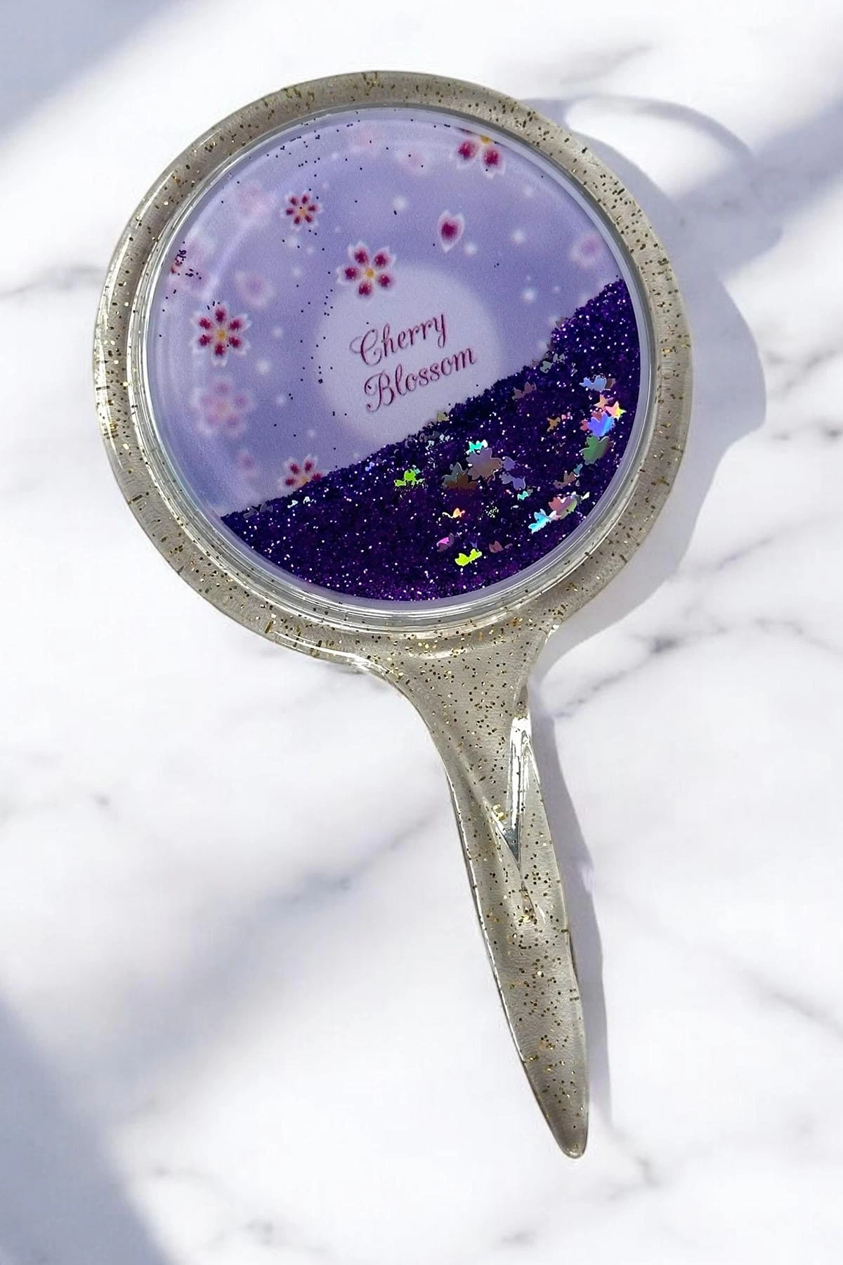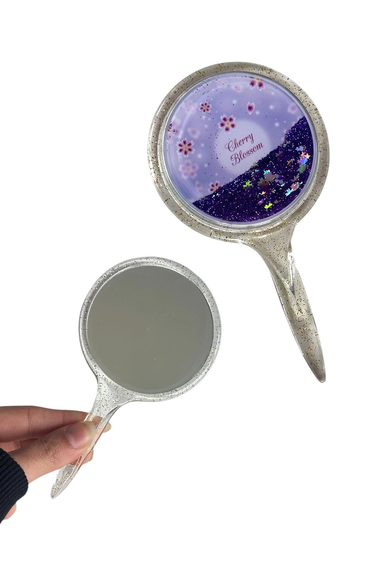 Mor Renk Pul Detaylı Çiçek Figürlü El Aynası