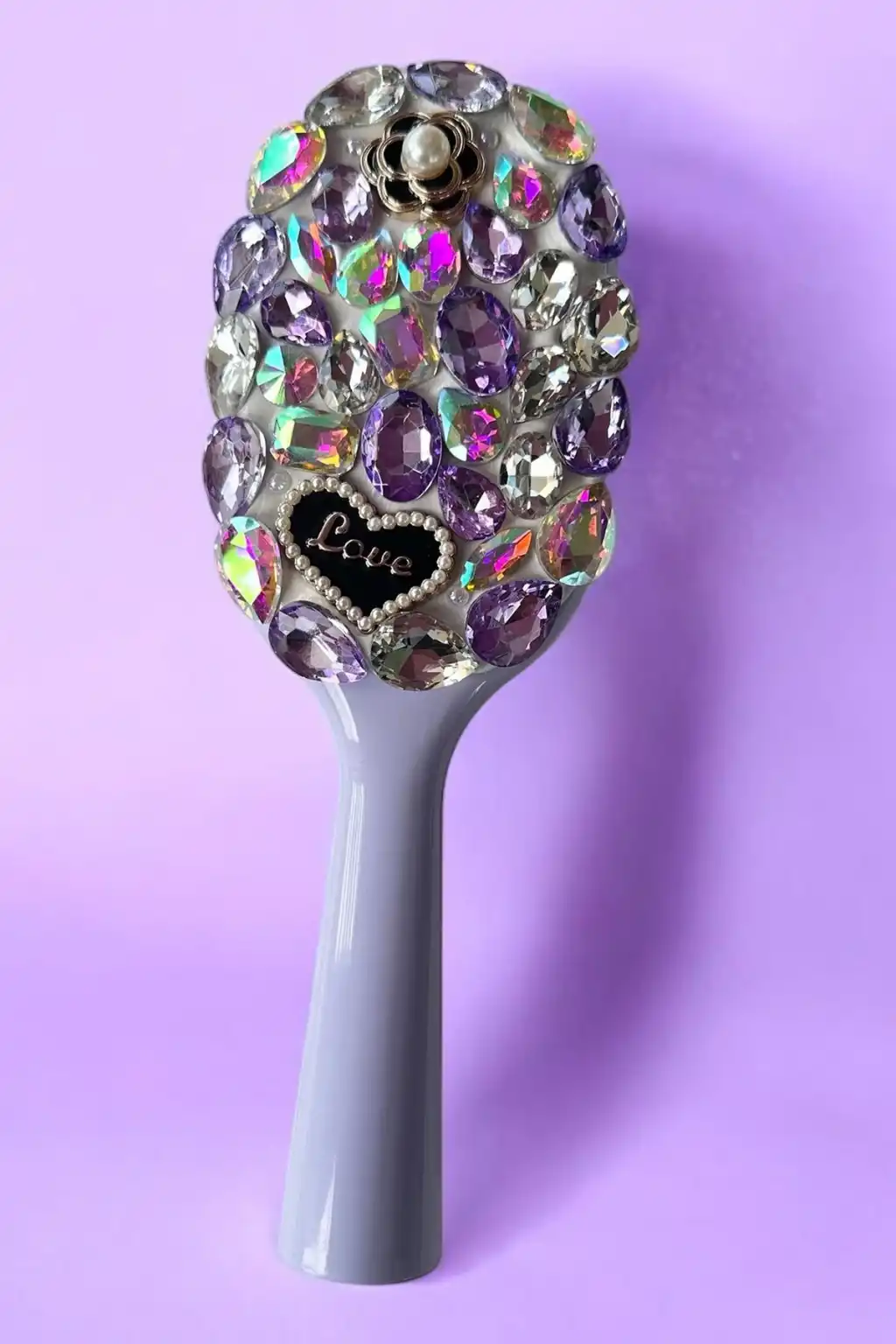Mor Renk Taş Ve Love Yazılı Saç Tarama Fırçası/ Tarak