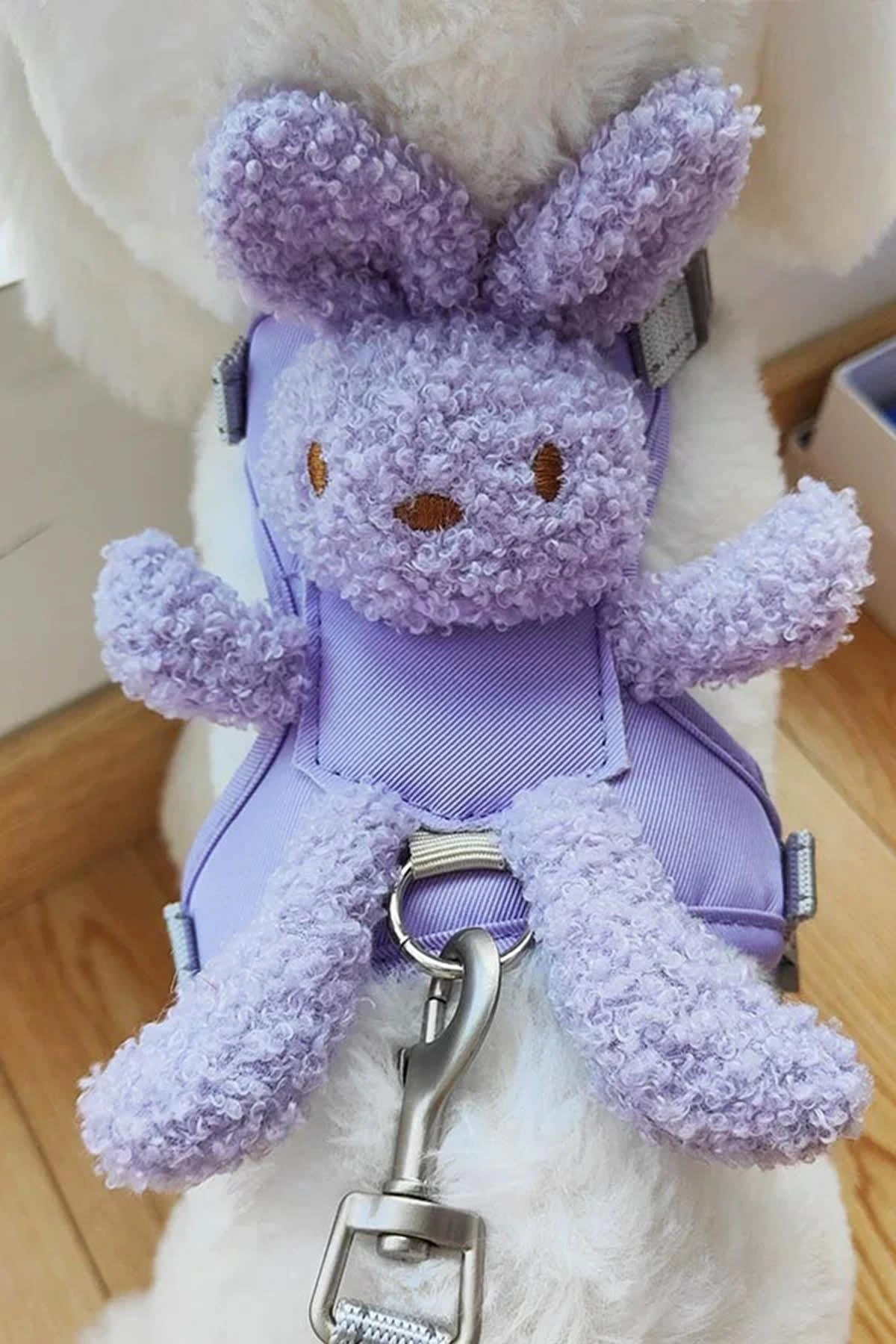 Mor Ve Gri Renk Ayıcık Figürlü Bel Göğüs Ayarlanabilir Kedi/Köpek Tasma