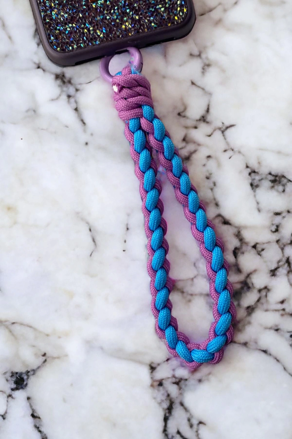 Mor Ve Mavi Renk Örgü Detaylı Telefon Aksesuarı