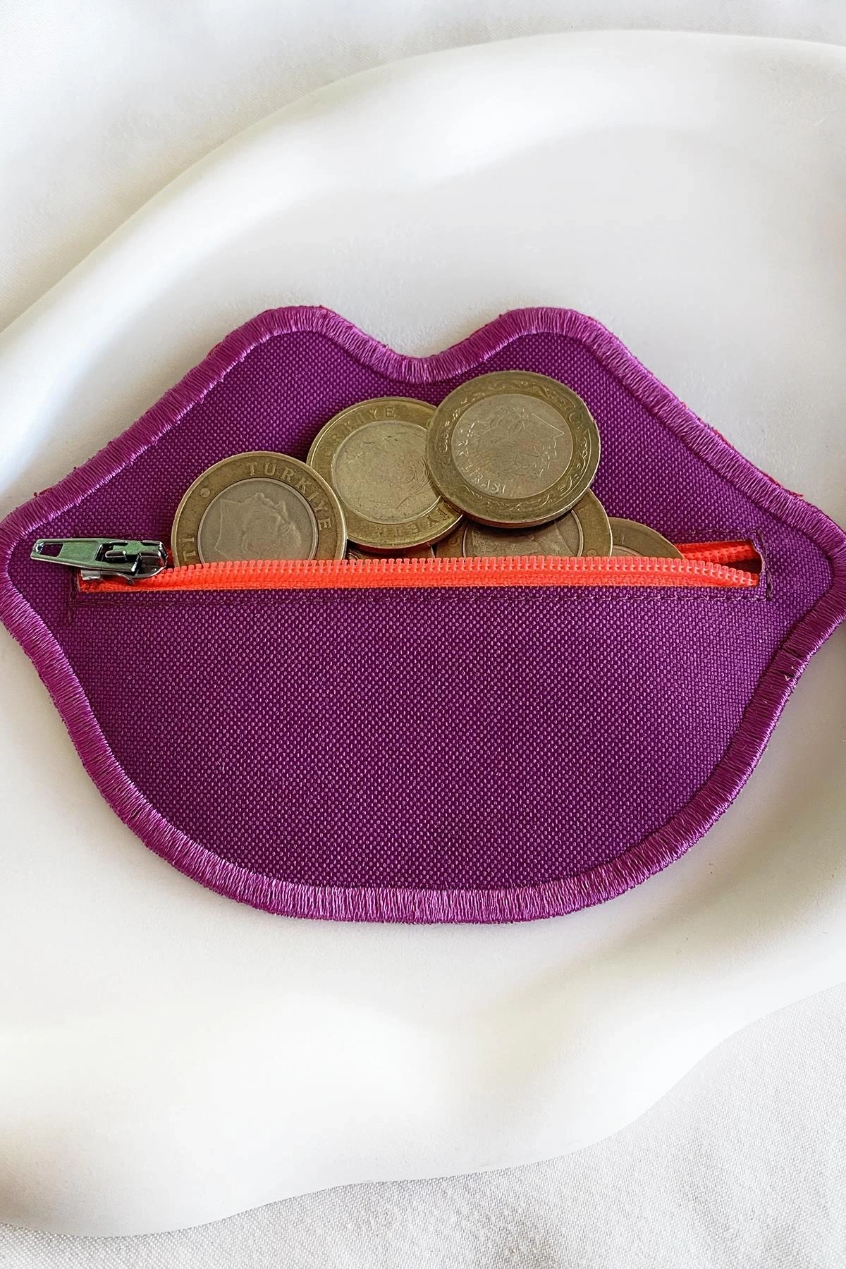 Mürdüm Renk Dudak Detaylı Kadın Cüzdan