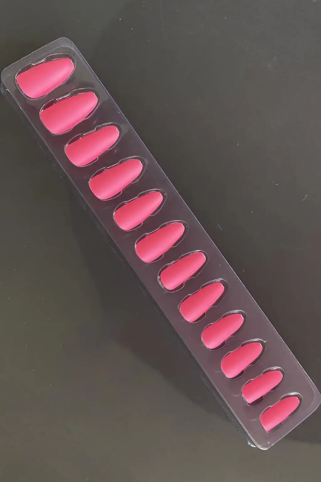 Pembe Renk 12'li Takma Takma Tırnak (Yapıştırıcılı)