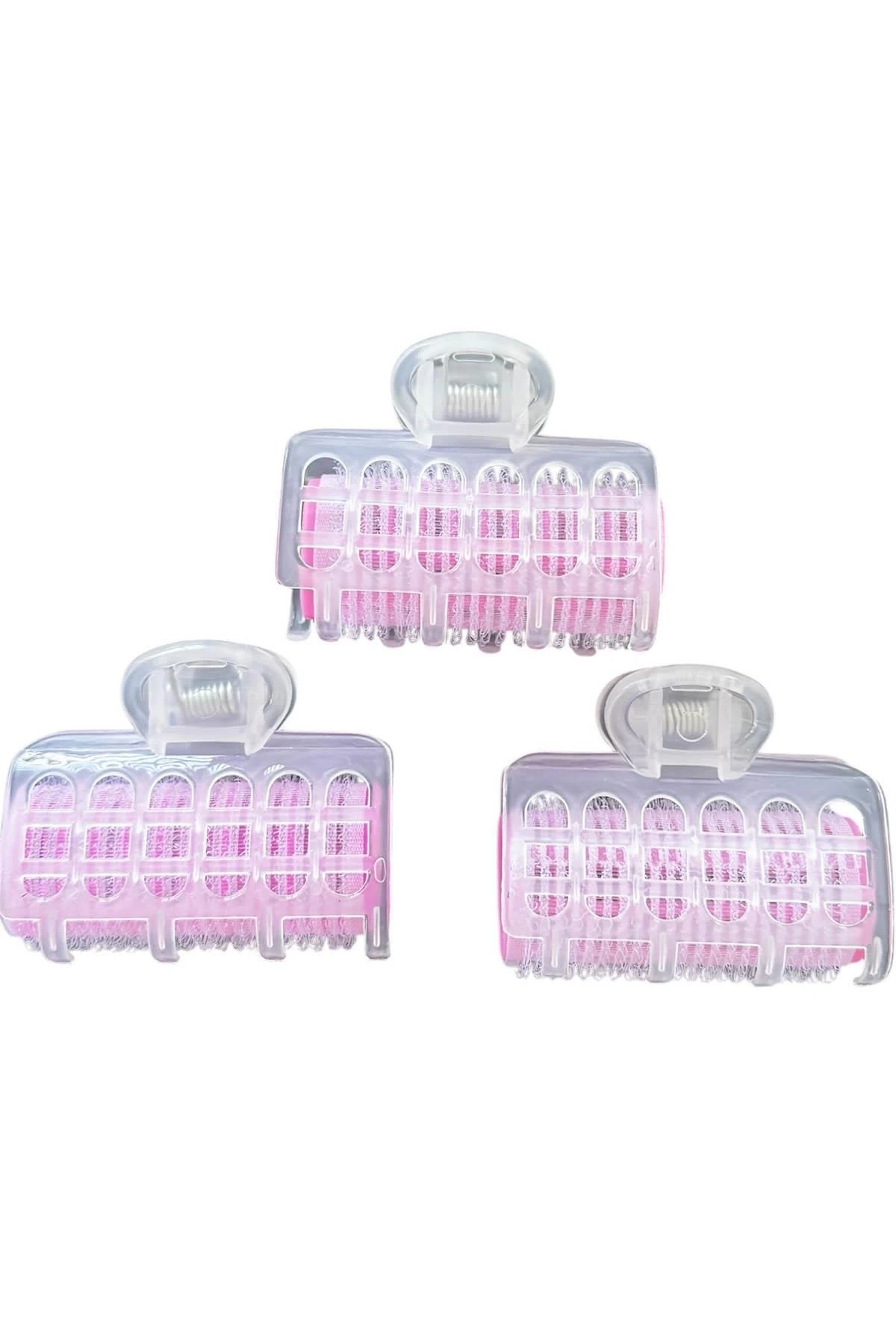 Pembe Renk 3'lü Bigudi Cırtlı Mandal Tokalı/ Yapışkanlı Saç Bigudisi