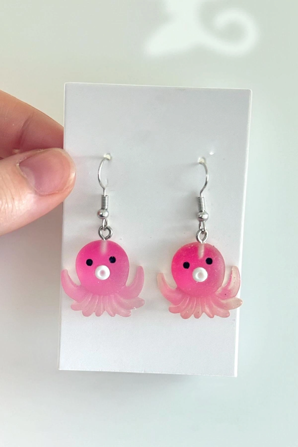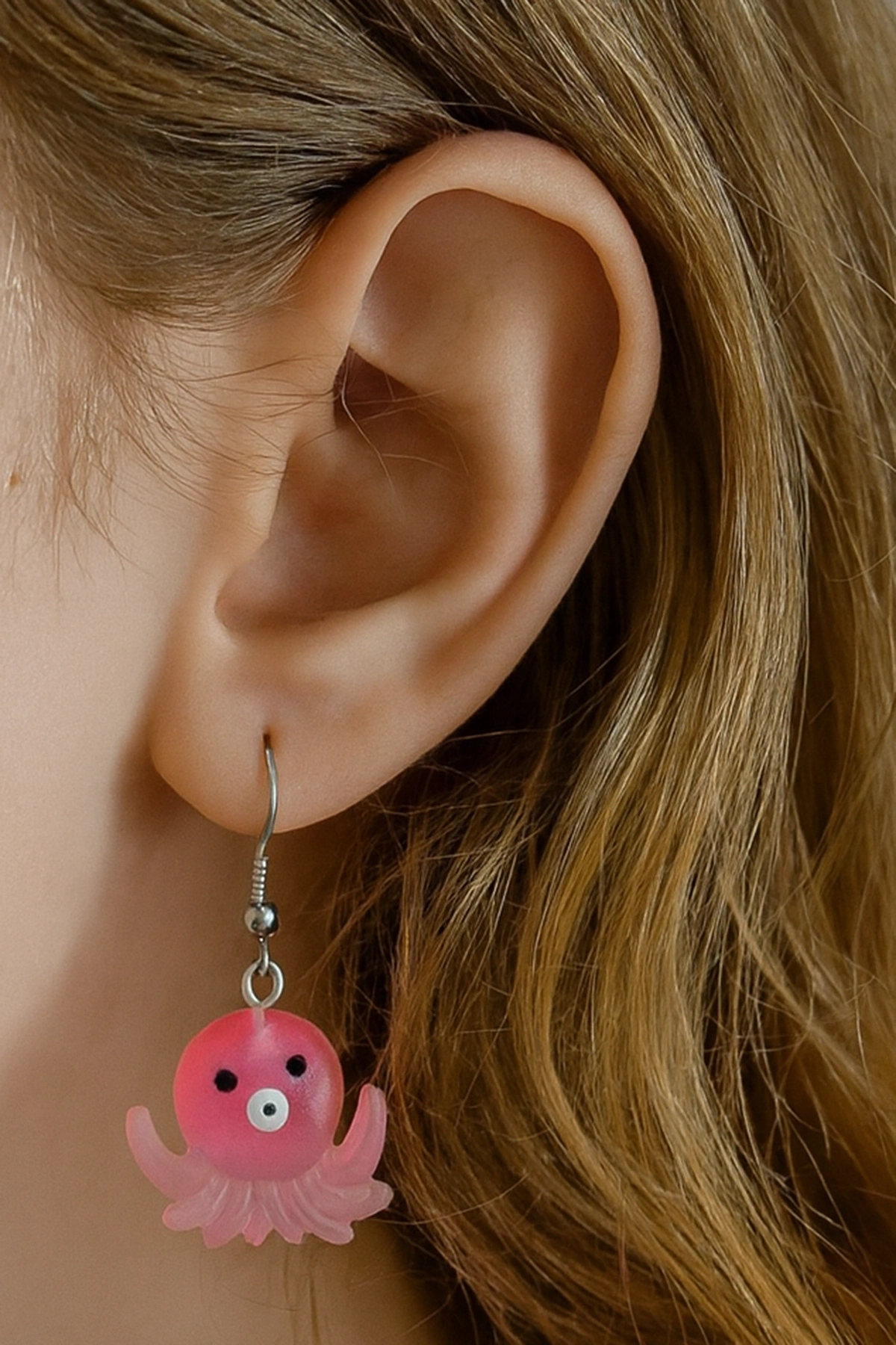 Pembe Renk Ahtapot Figürlü Çocuk Küpe (Çift)