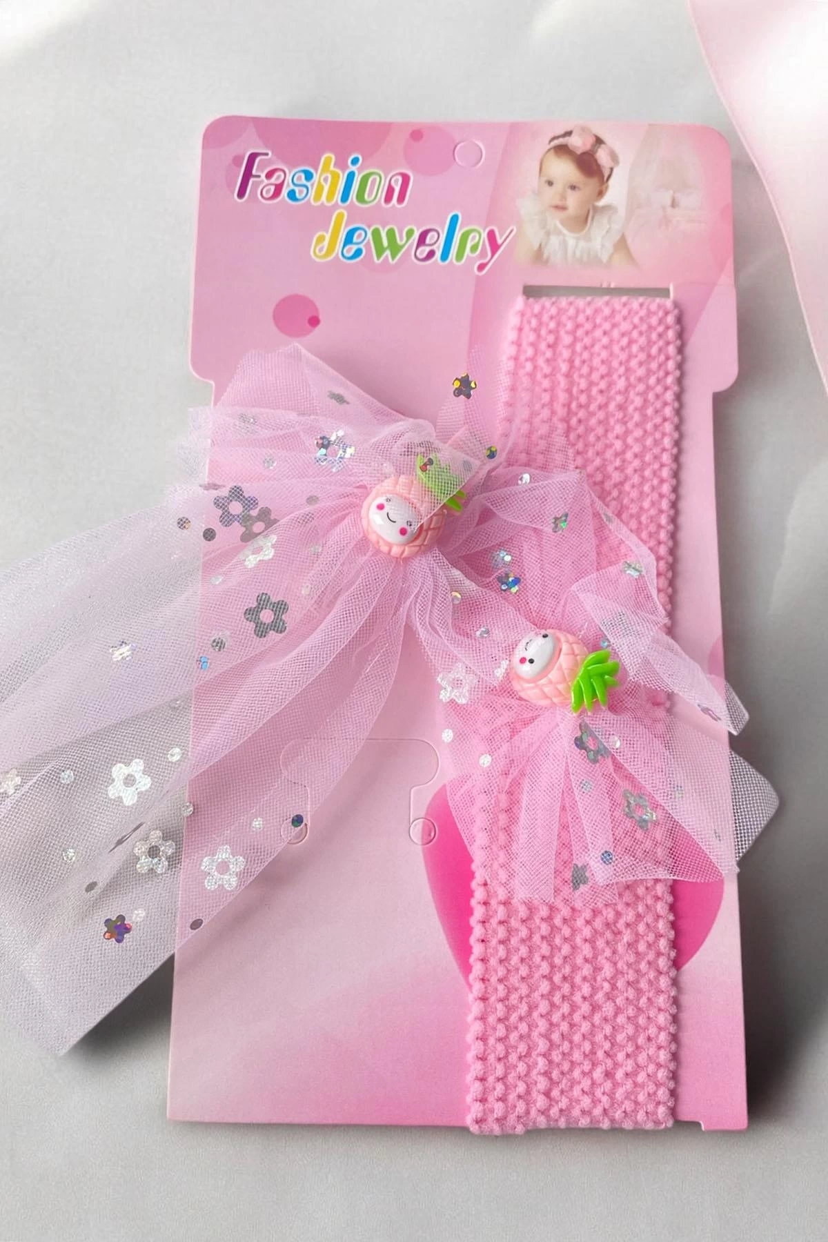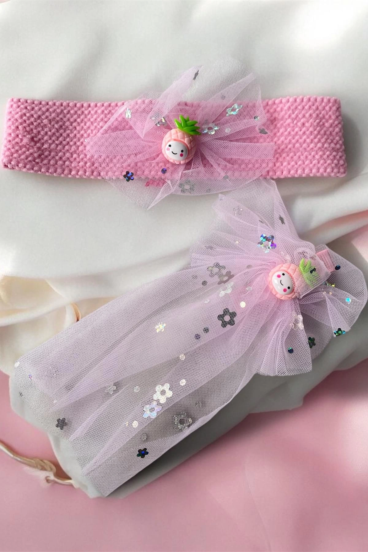 Pembe Renk Ananas Figürlü Yan Toka Ve Saç Bandı Set