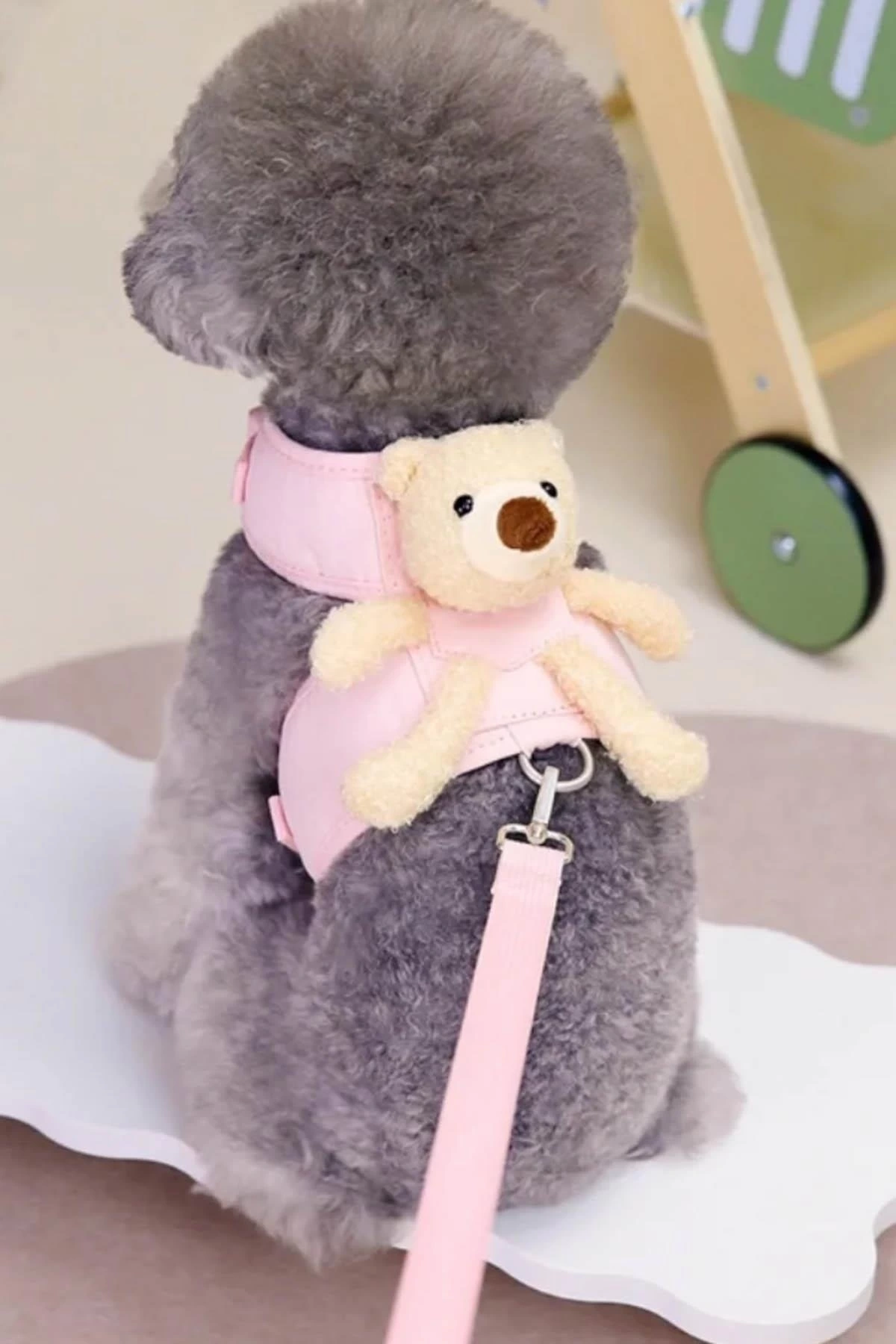 Pembe Renk Ayıcık Figürlü L Beden Göğüs Kedi/Köpek Tasma
