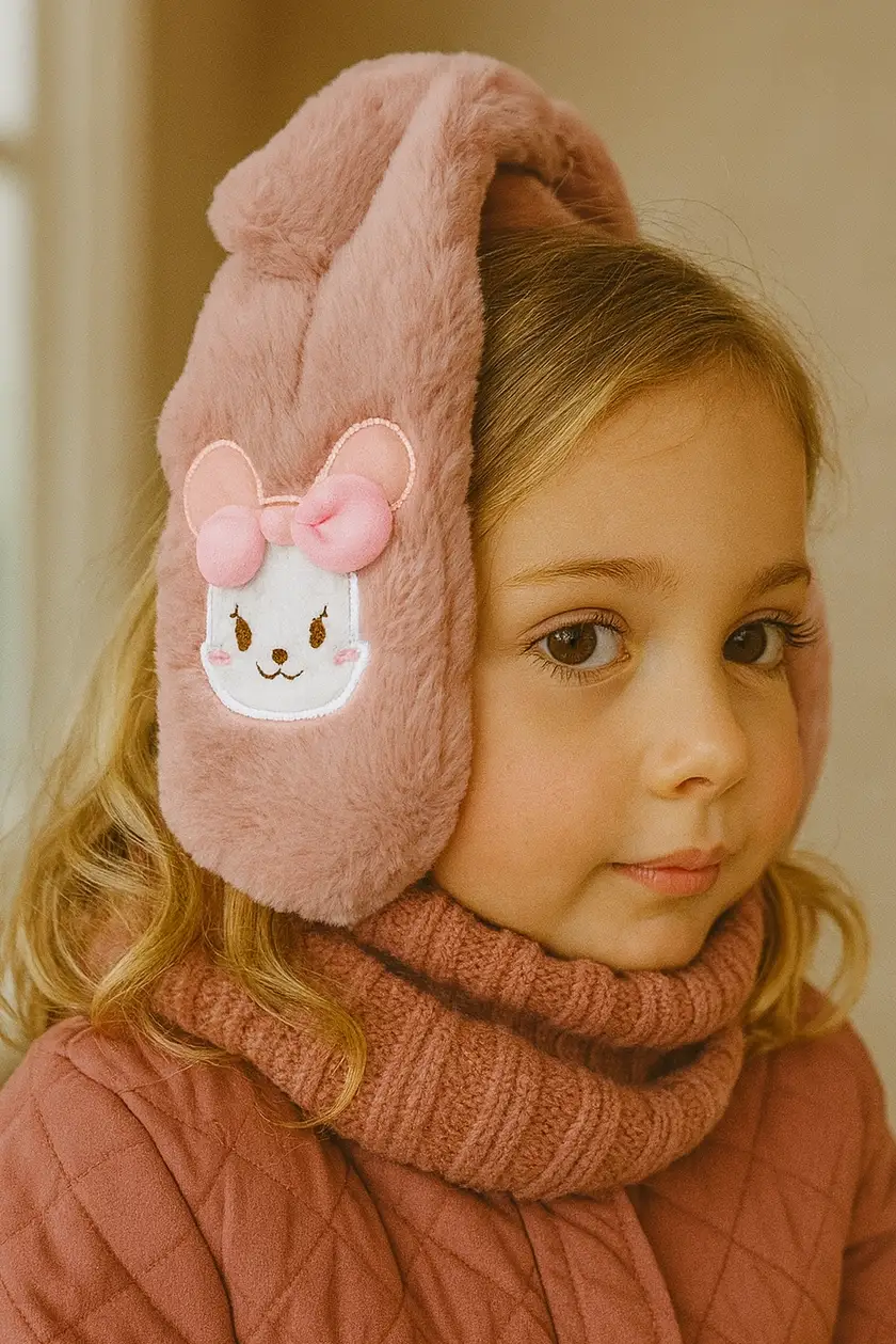 Pembe Renk Ayıcık Figürlü Peluş Çocuk Kulaklık