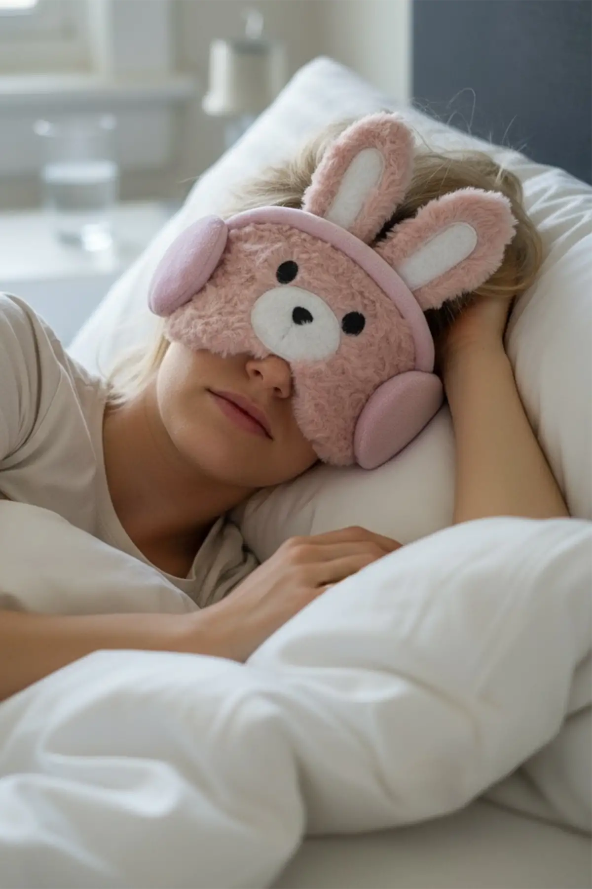 Pembe Renk Ayıcık Figürlü Peluş Uyku Bandı