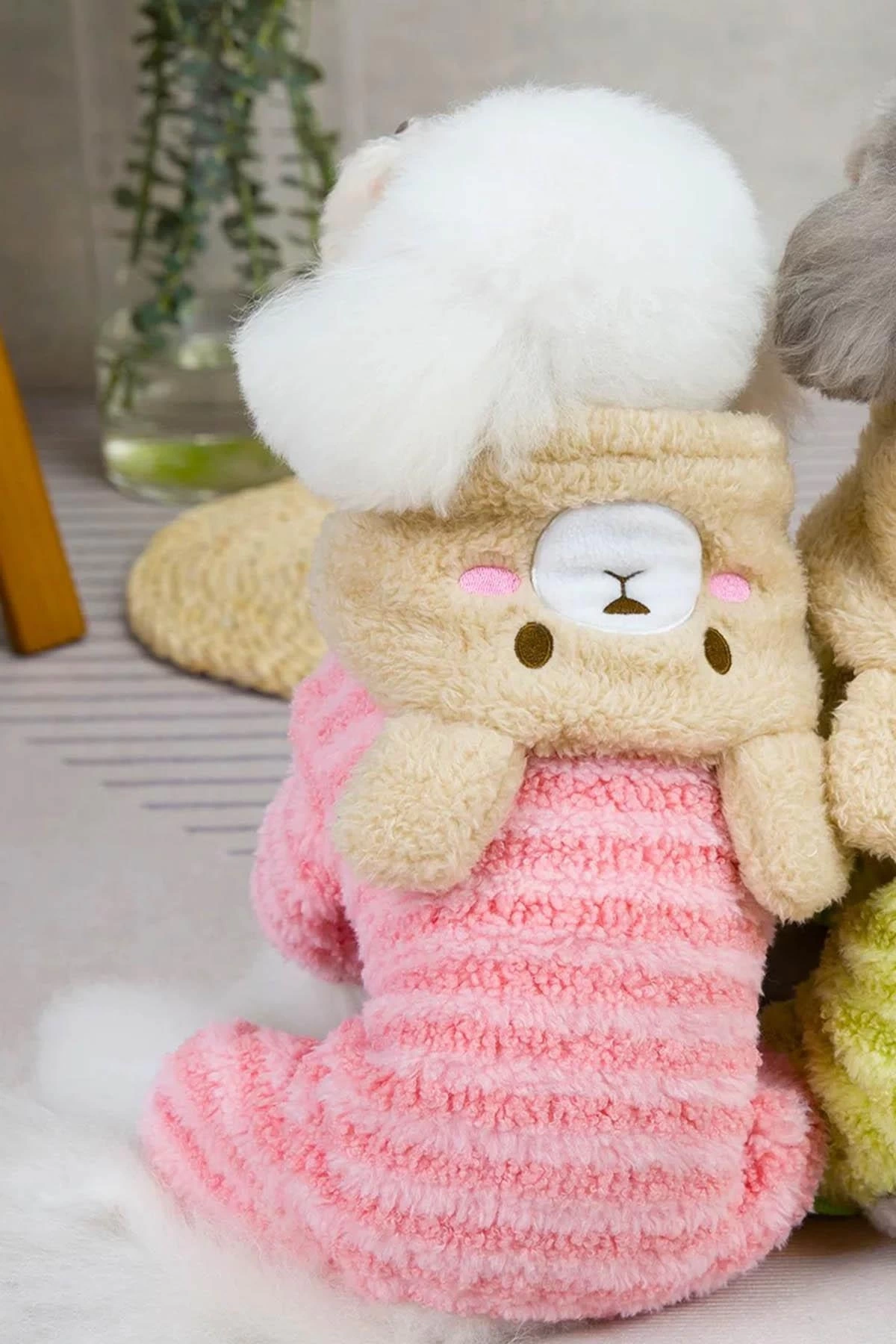 Pembe Renk Ayıcık Figürlü Peluş XL Köpek Tulum