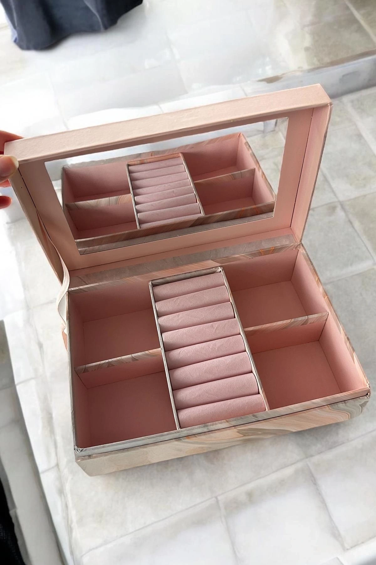 Pembe Renk Ayna Detaylı Takı Organizeri
