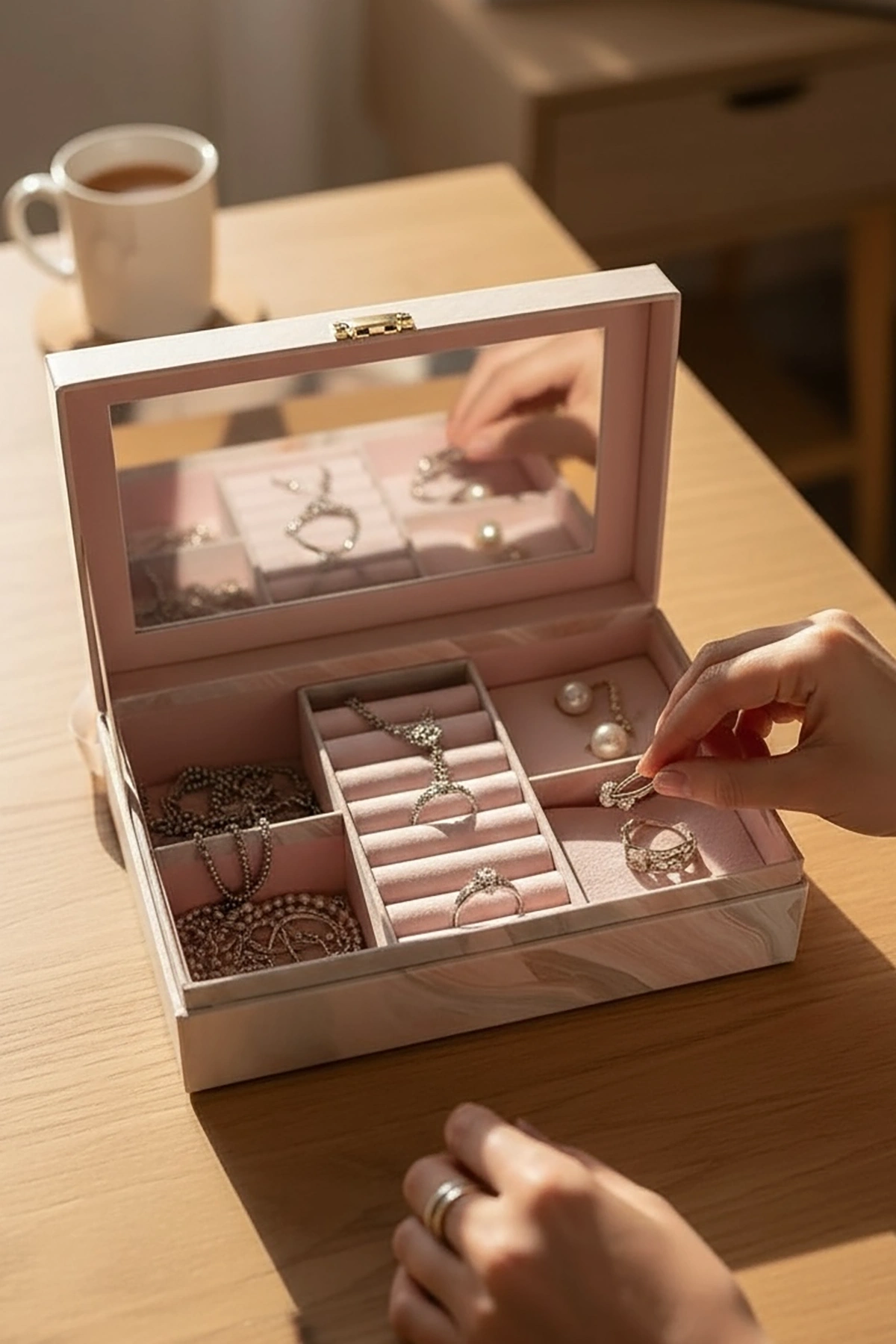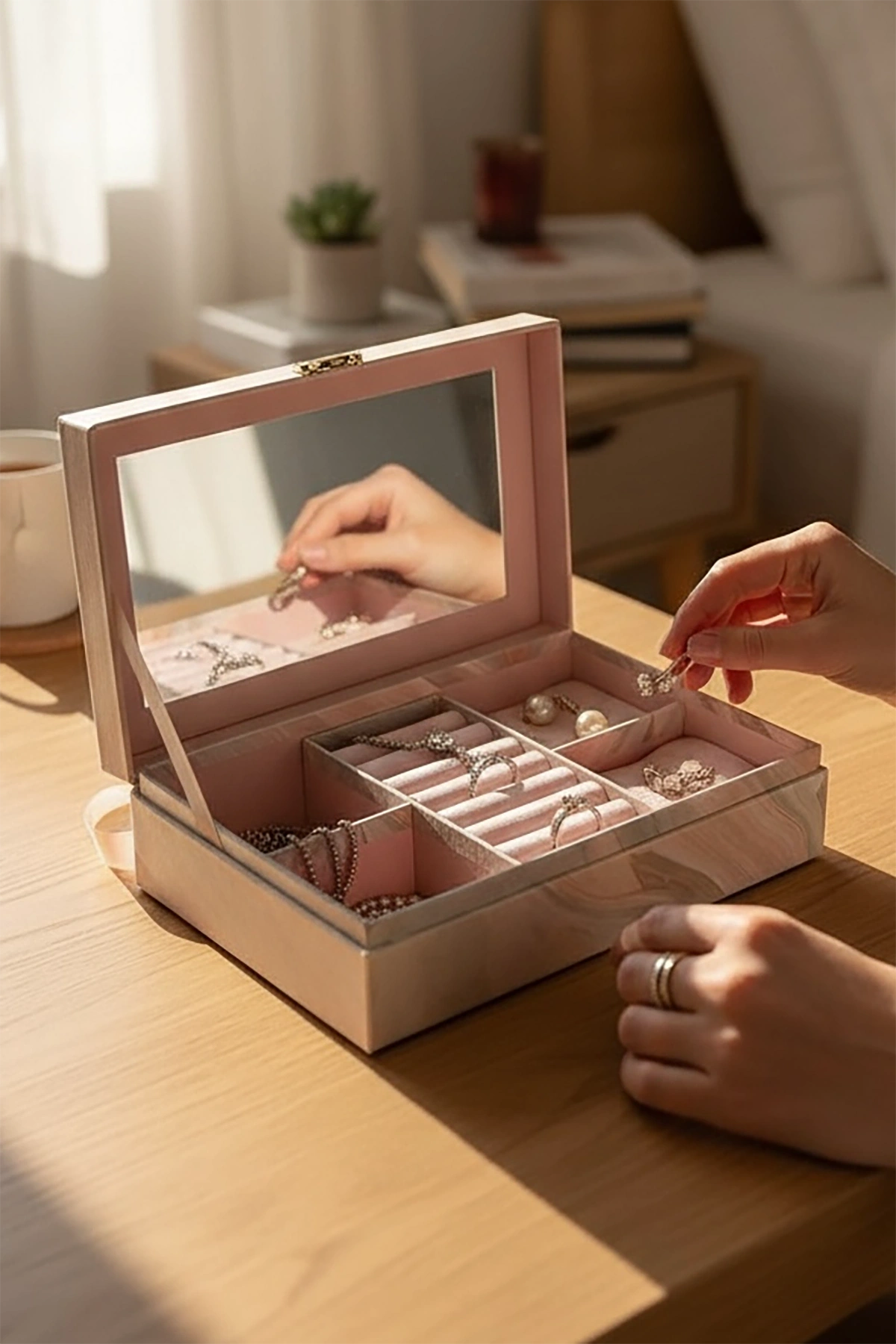 Pembe Renk Ayna Detaylı Takı Organizeri