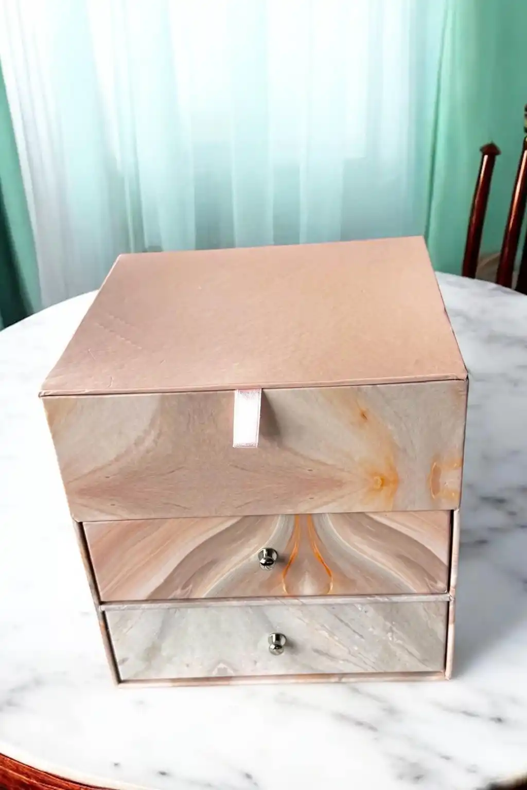 Takılarınızı düzenli bir şekilde saklamak ve her zaman kolayca erişebilmek için tasarlanmış bu çekmeceli takı kutusu