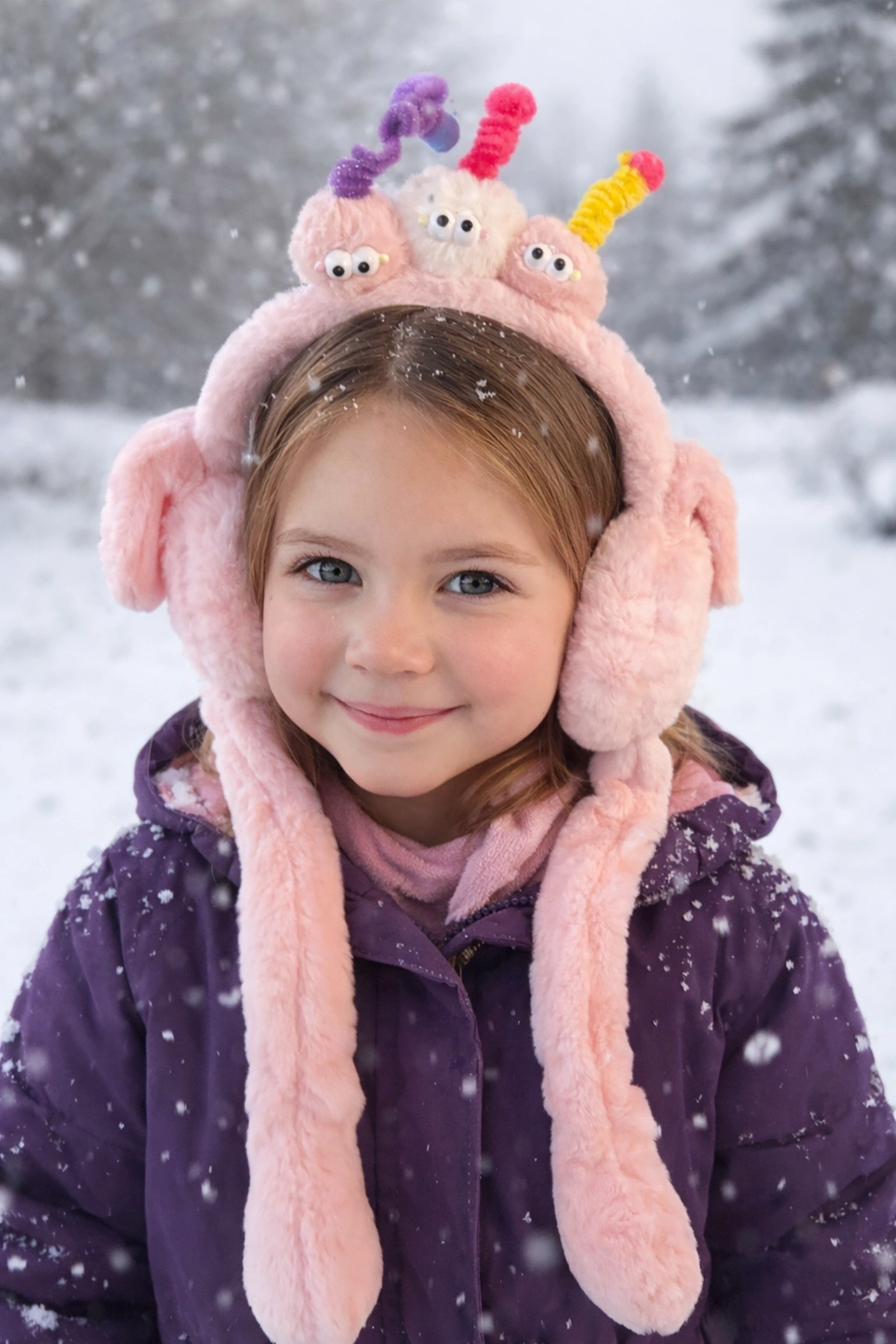 Pembe Renk Canavar Figürlü Kulakları Oynayan Peluş Kulaklık