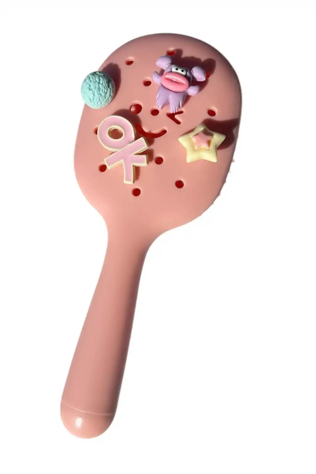Pembe Renk Charmlı Saç Tarama Fırçası/ Tarak