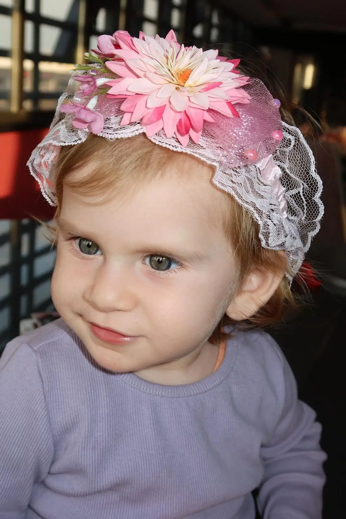 Pembe Renk Çiçek Figürlü Çocuk/ Bebek Saç Bandı
