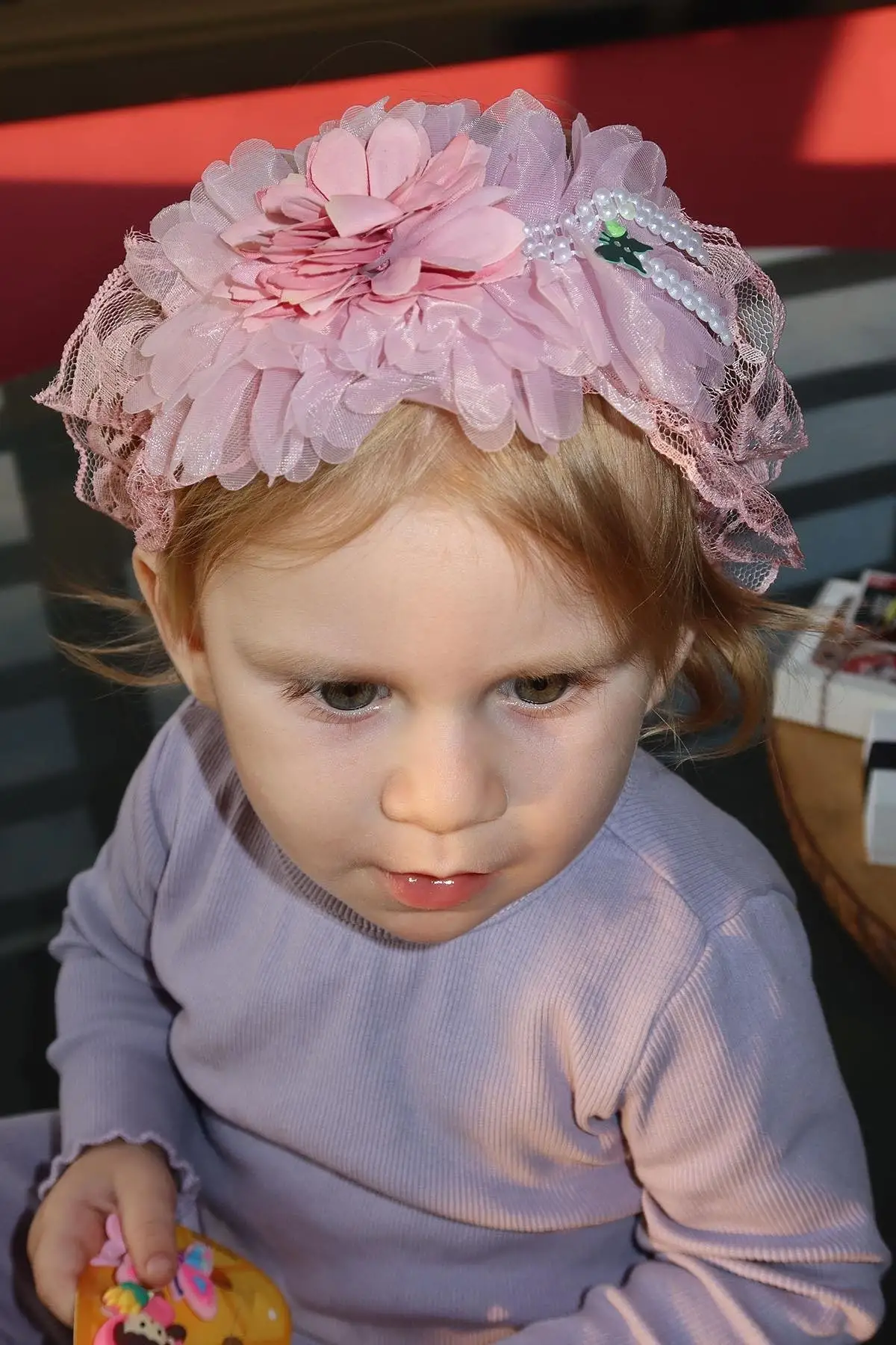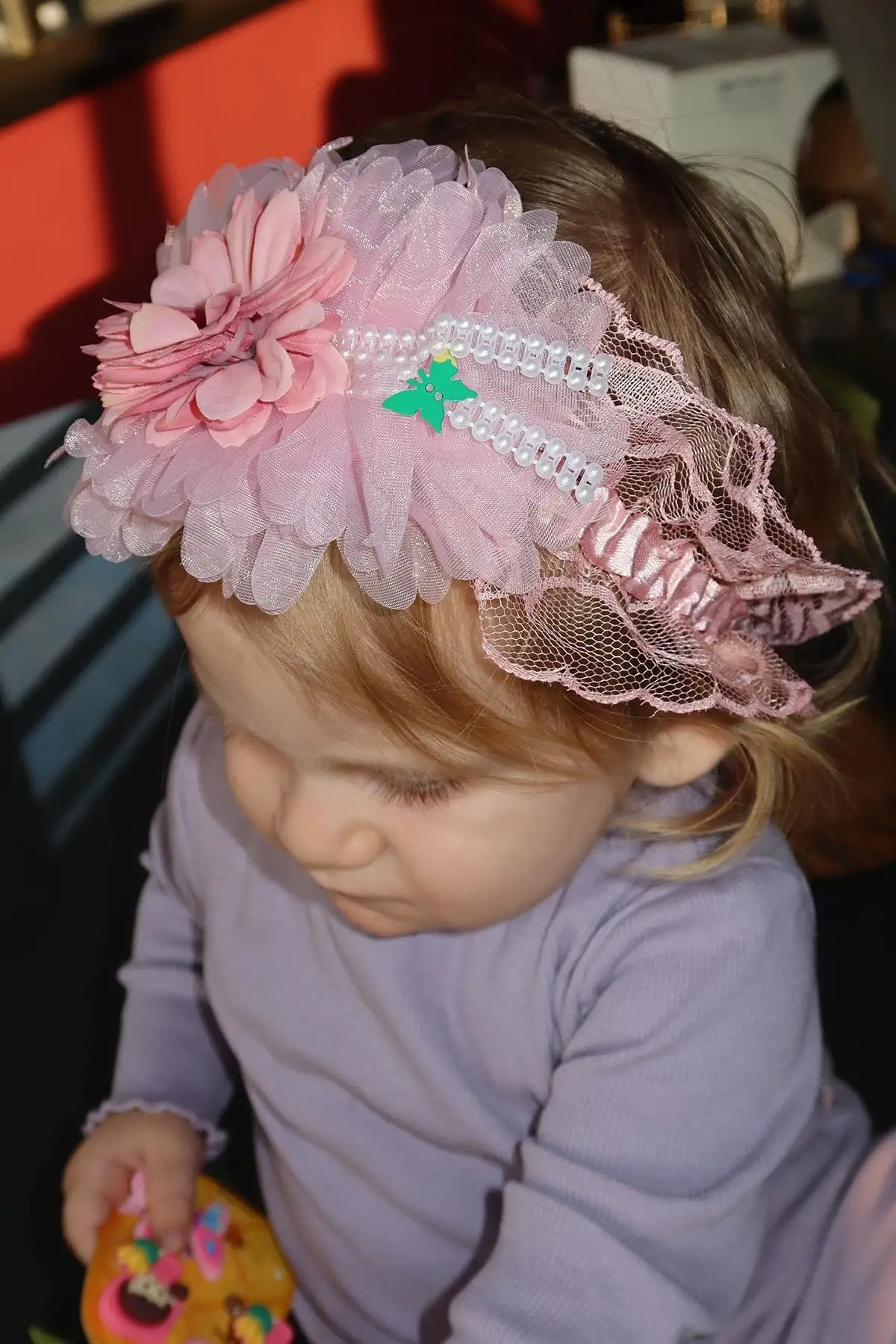 Pembe Renk Çiçek Figürlü Çocuk/ Bebek Saç Bandı